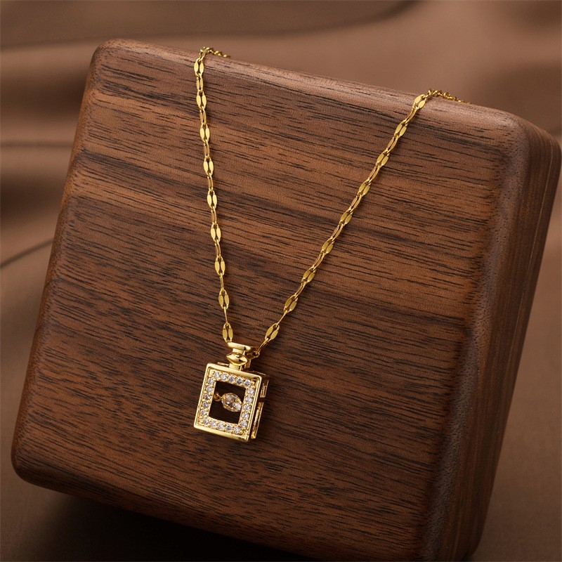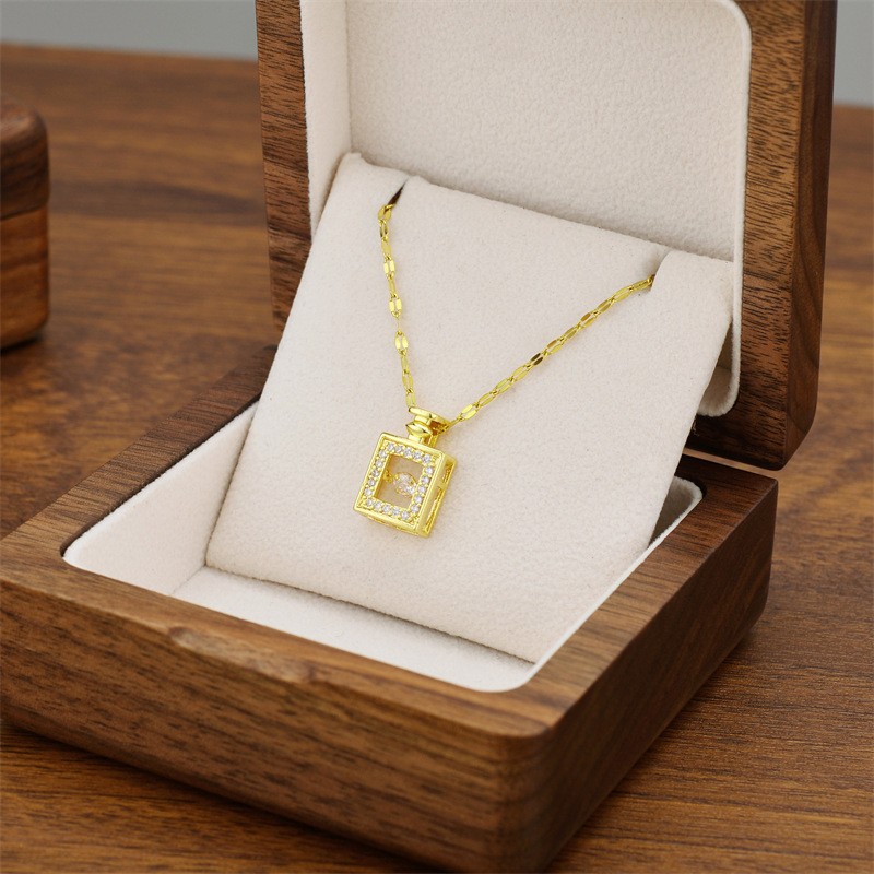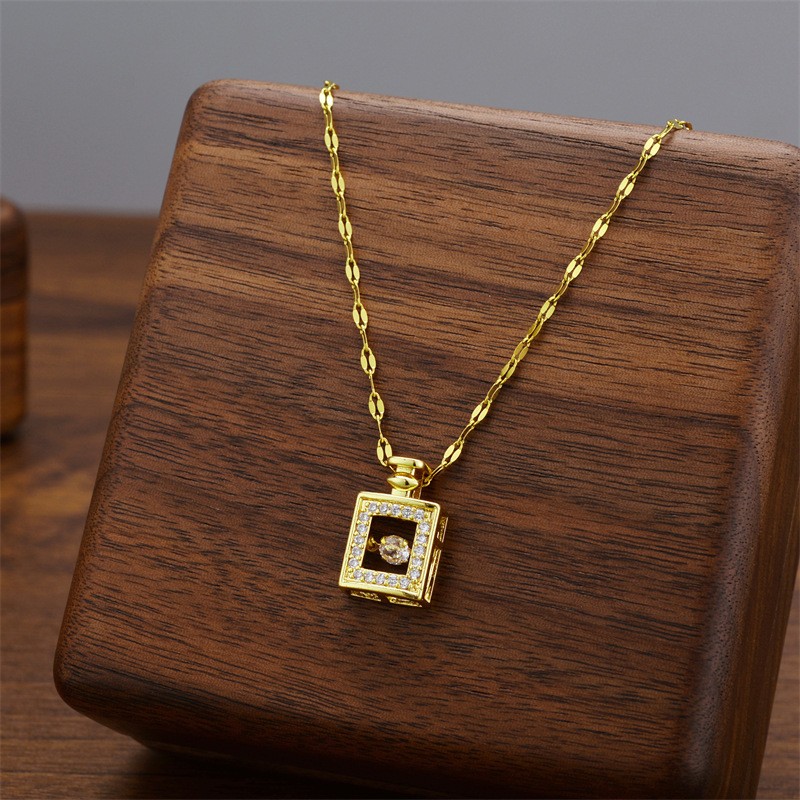Titanium Steel Jewelry Necklace, with Cubic Zirconia, plated, fashion jewelry & for woman, golden, Length:Approx 41 cm, Sold By PC