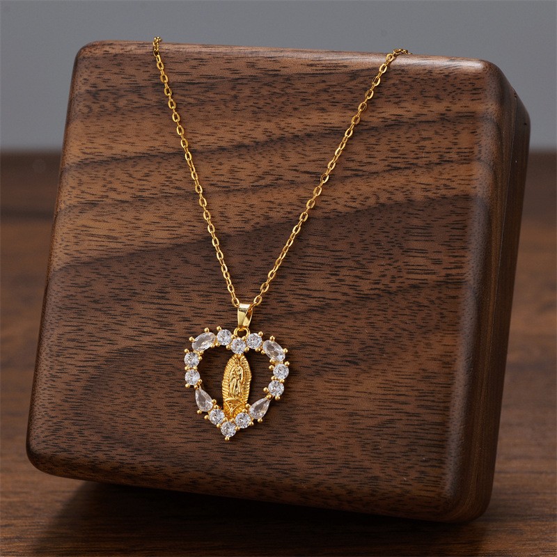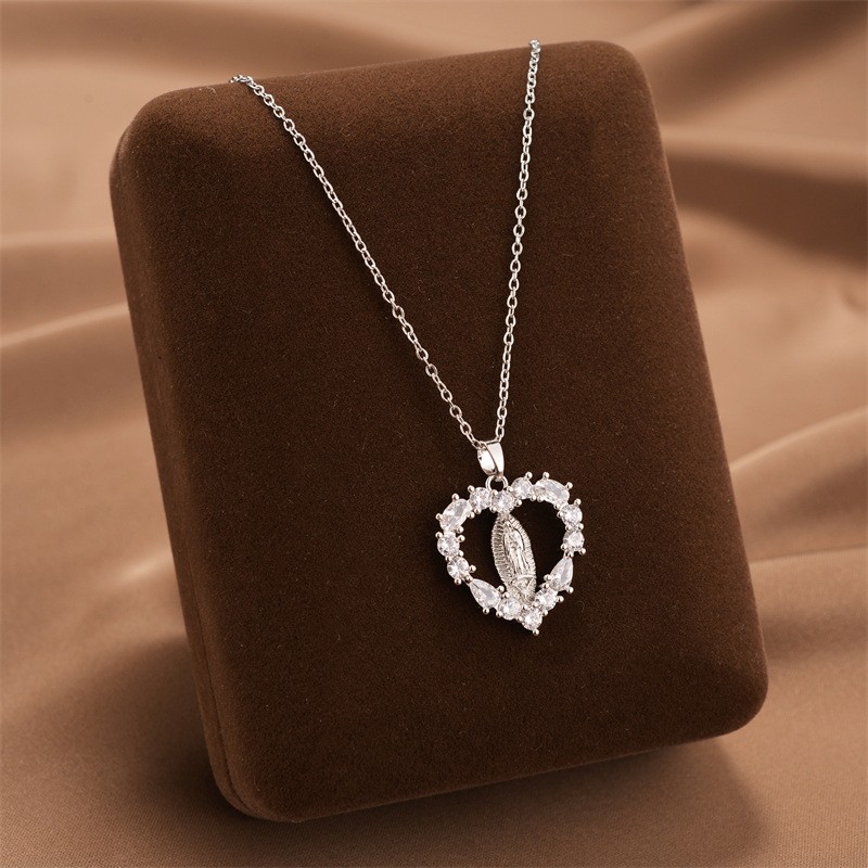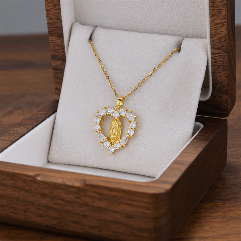 Titanium Steel Jewelry Necklace, Heart, plated, oval chain & with cubic zirconia Approx 16 Inch