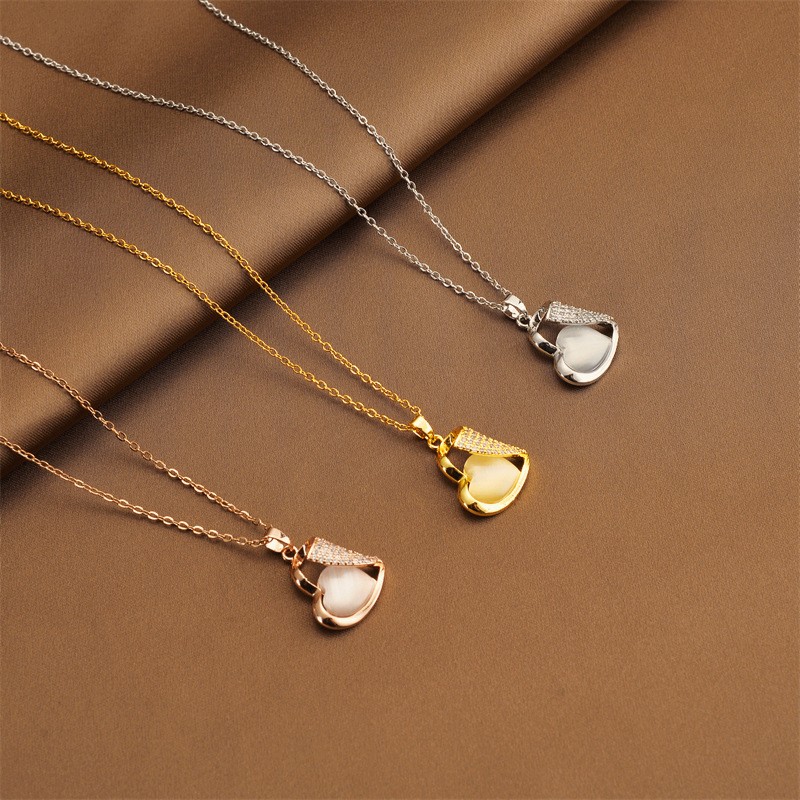 Titanium Steel Jewelry Necklace, Heart, plated, oval chain & with cubic zirconia Approx 16 Inch