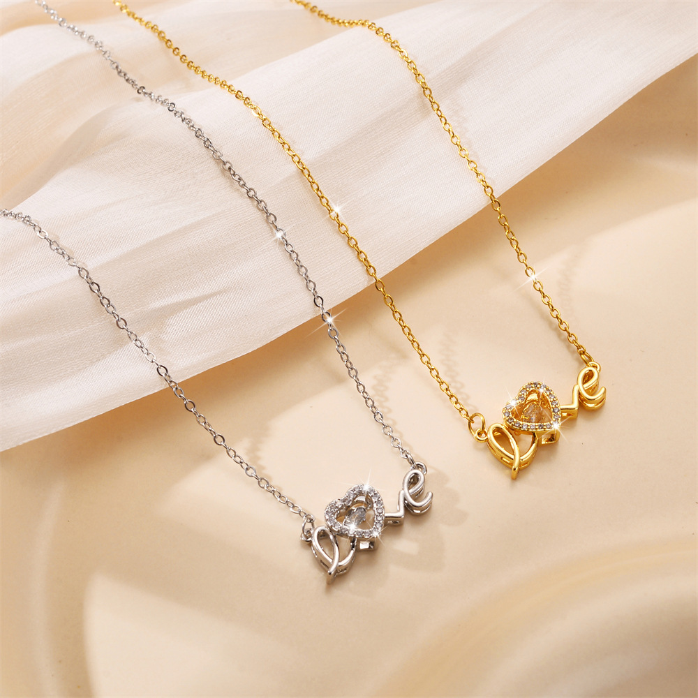 Titanium Steel Jewelry Necklace, Letter, word love, plated, oval chain & with cubic zirconia 13mm Approx 18 Inch