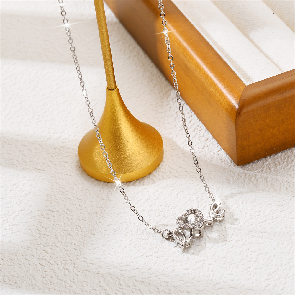 Titanium Steel Jewelry Necklace, Heart, plated, oval chain & with cubic zirconia Approx 16 Inch