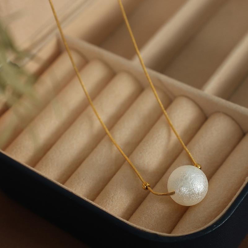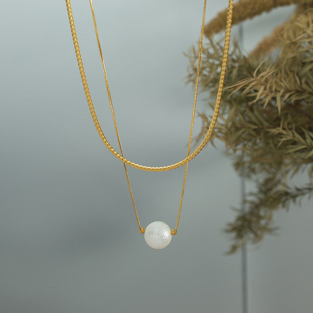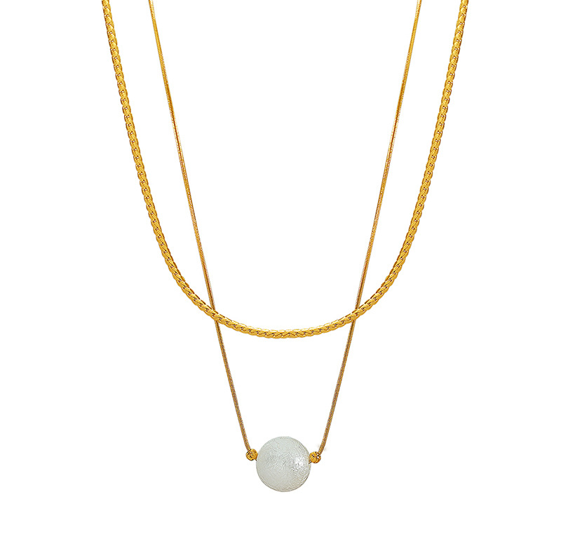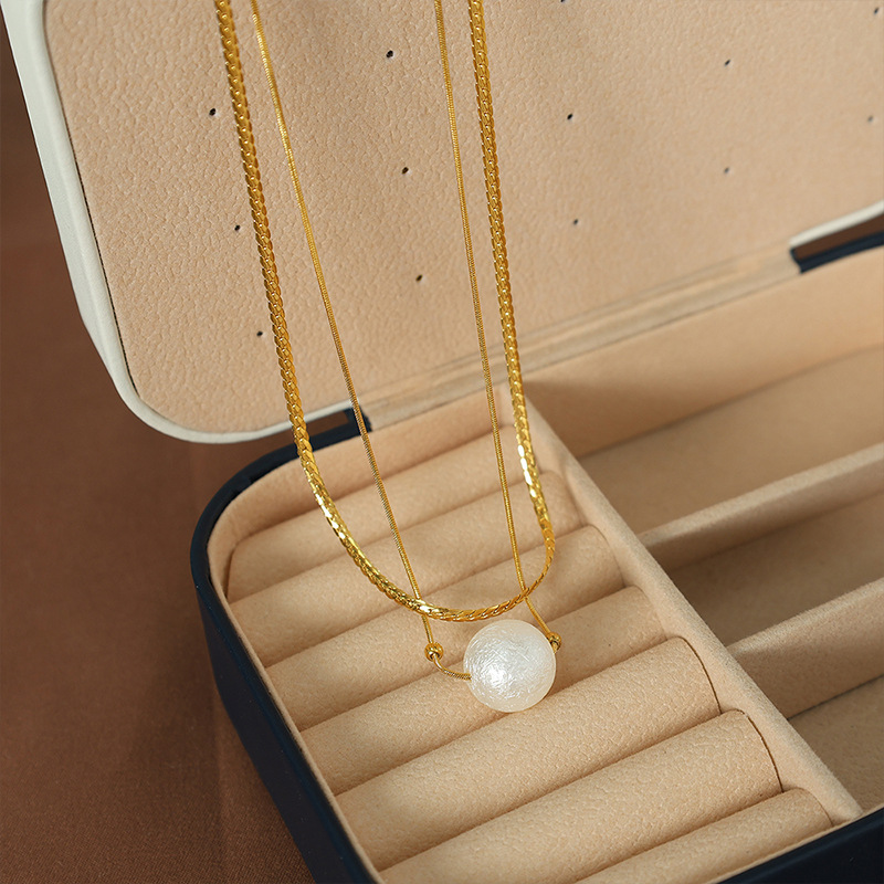 Titanium Steel Jewelry Necklace, with Plastic Pearl, with 5cm extender chain, plated, 2 pieces & fashion jewelry & for woman, golden, Length:42 cm, Sold By Set