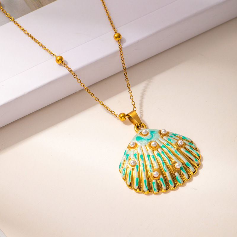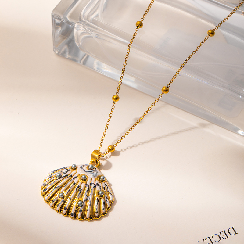 Titanium Steel Jewelry Necklace, with Plastic Pearl, gold color plated, fashion jewelry & enamel, more colors for choice, Sold By PC