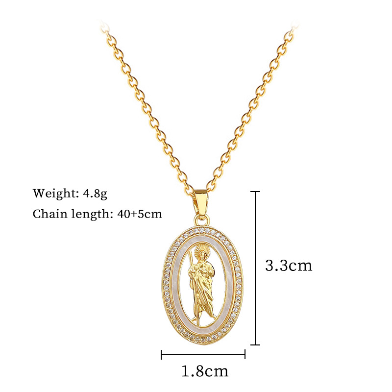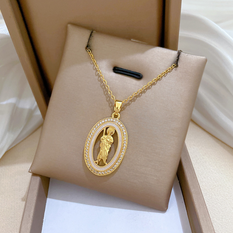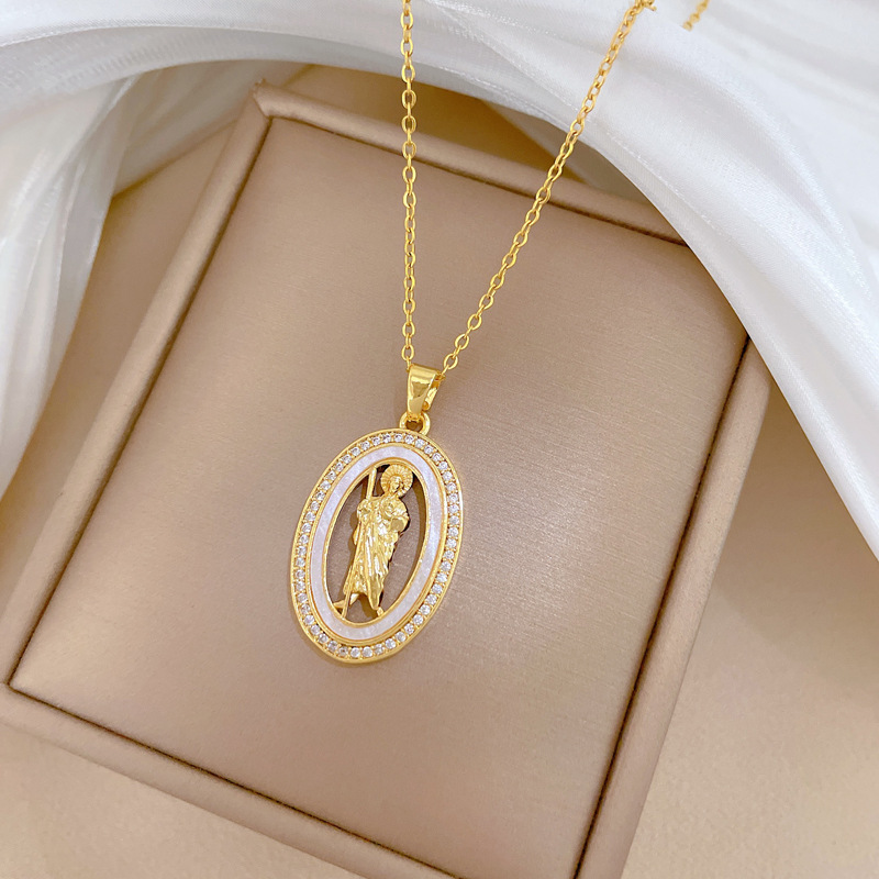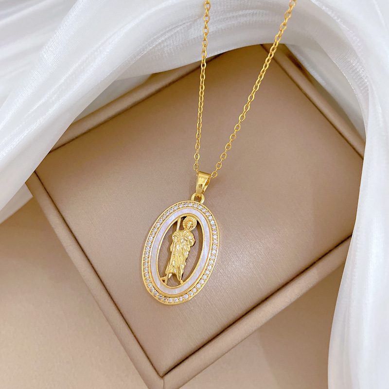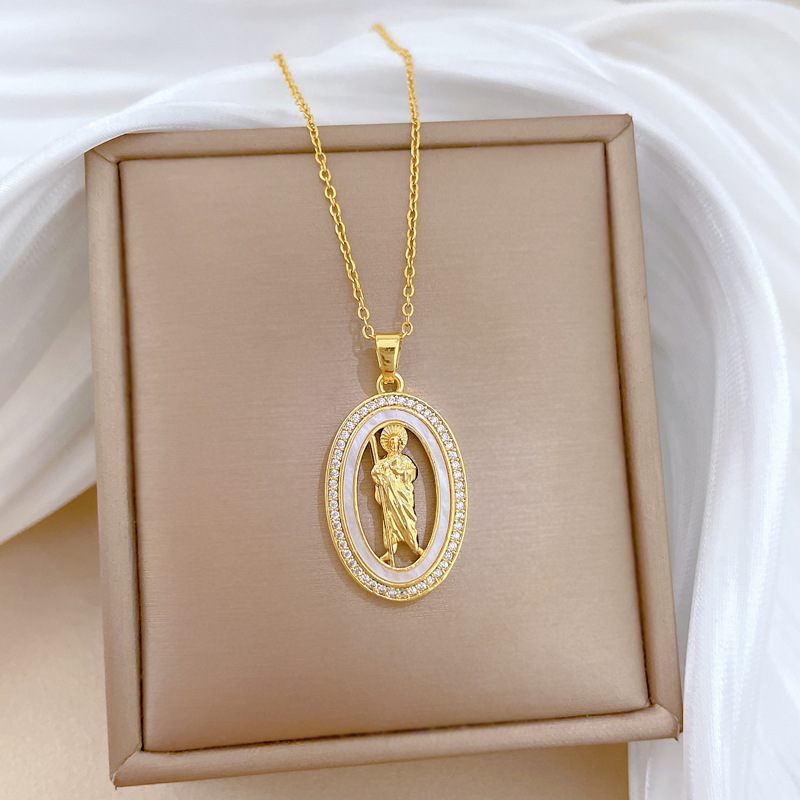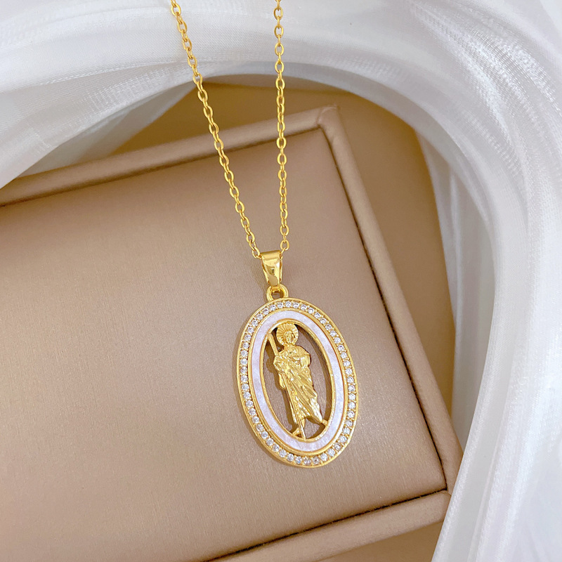 Titanium Steel Jewelry Necklace, with Shell & Brass, Oval, micro pave cubic zirconia & for woman & hollow, golden, Sold By PC