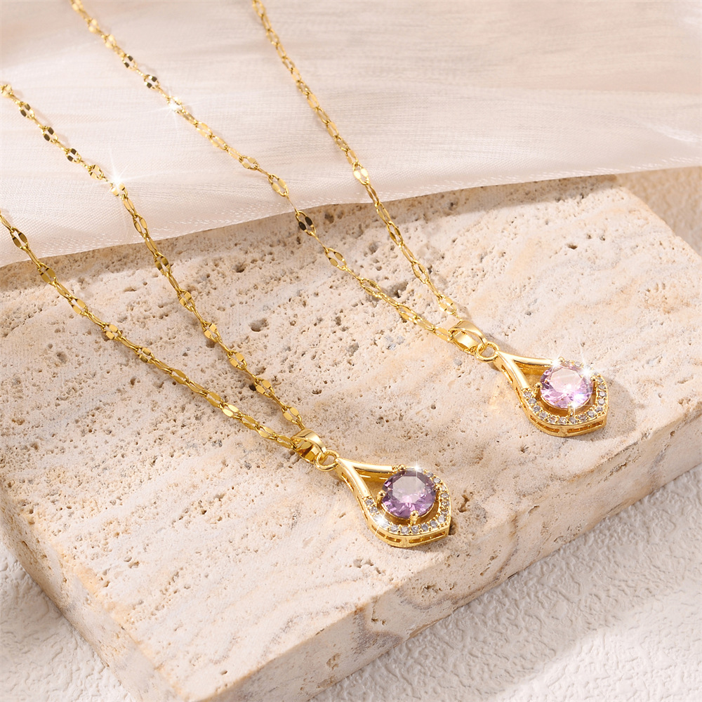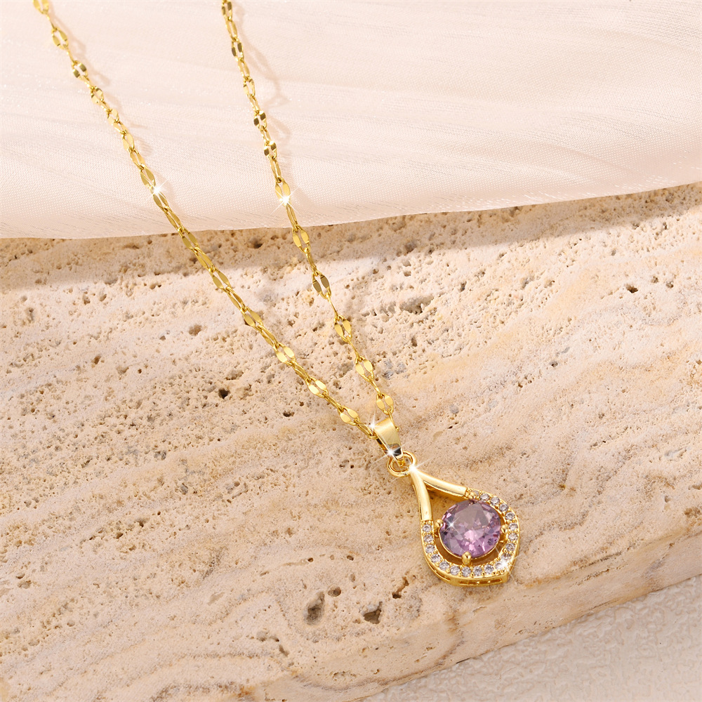 Titanium Steel Jewelry Necklace, Teardrop, plated, fashion jewelry & micro pave cubic zirconia & for woman, more colors for choice, Sold By PC