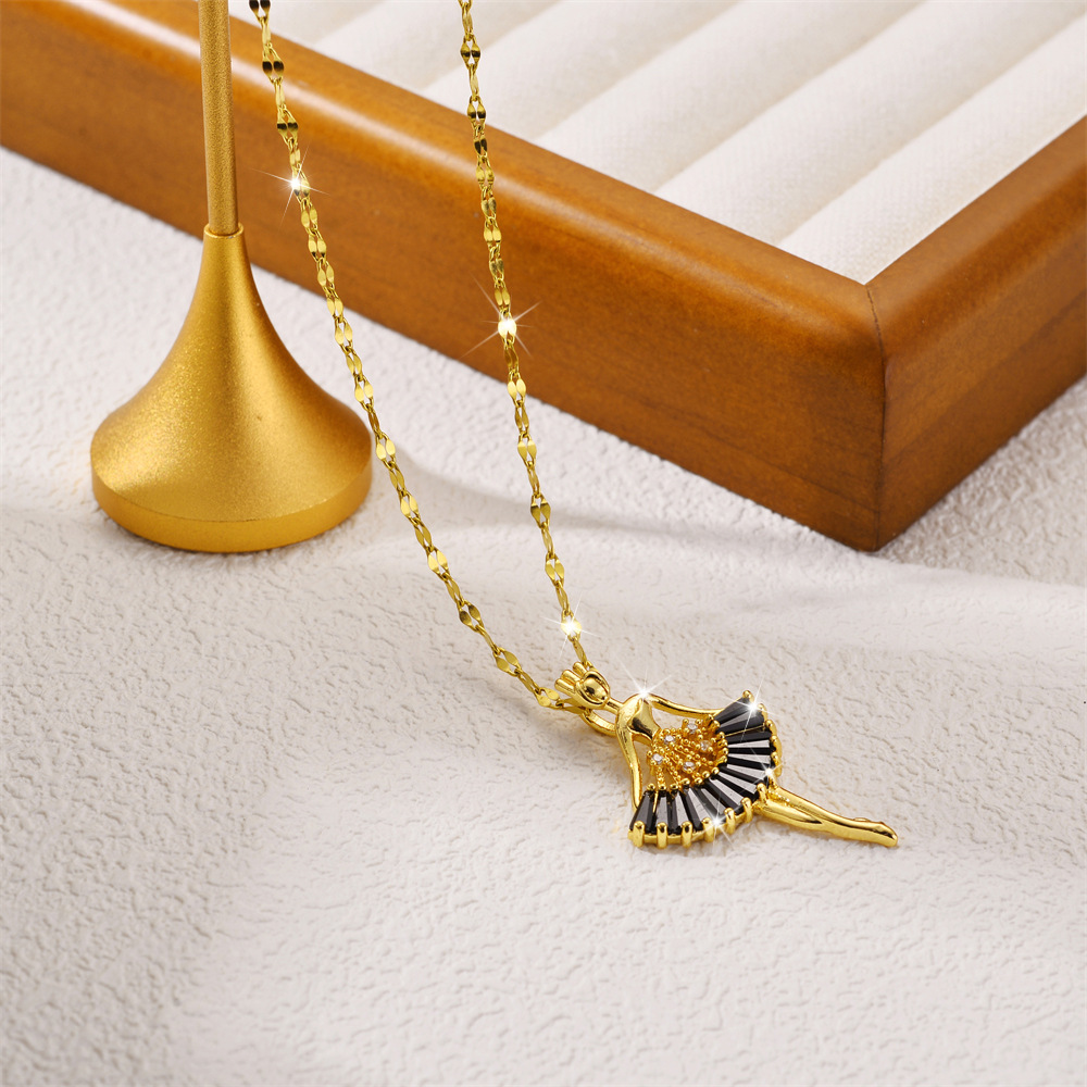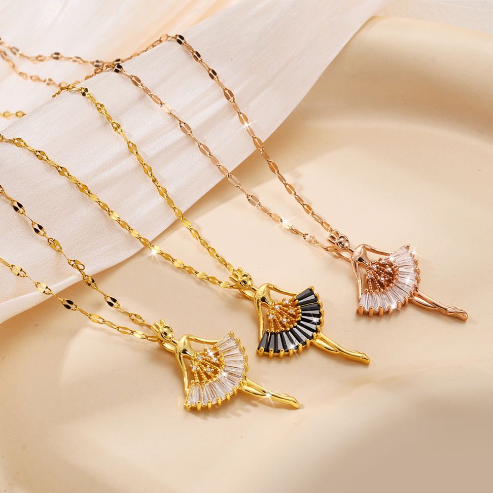 Titanium Steel Jewelry Necklace, Girl, plated, fashion jewelry & micro pave cubic zirconia & for woman, more colors for choice, Sold By PC