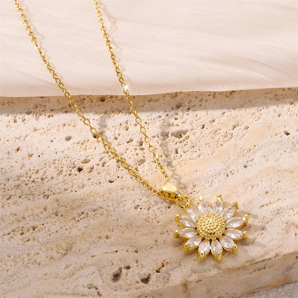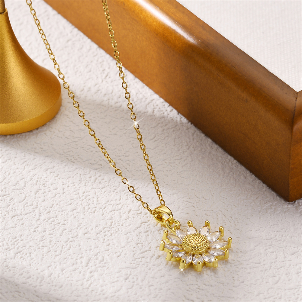 Titanium Steel Jewelry Necklace, Flower, plated, fashion jewelry & for woman & with rhinestone, more colors for choice, Sold By PC