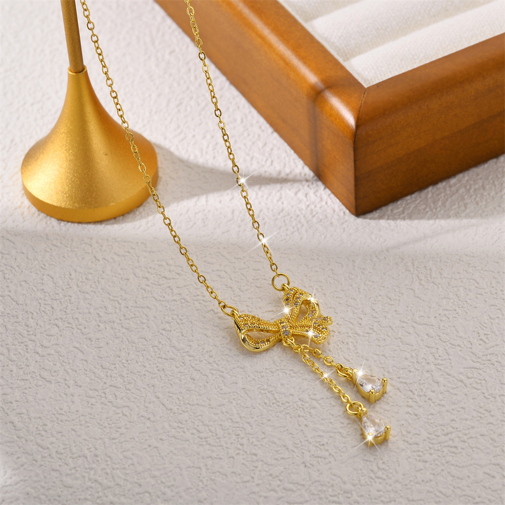 Titanium Steel Jewelry Necklace, Bowknot, plated, fashion jewelry & for woman & with rhinestone, more colors for choice, Sold By PC