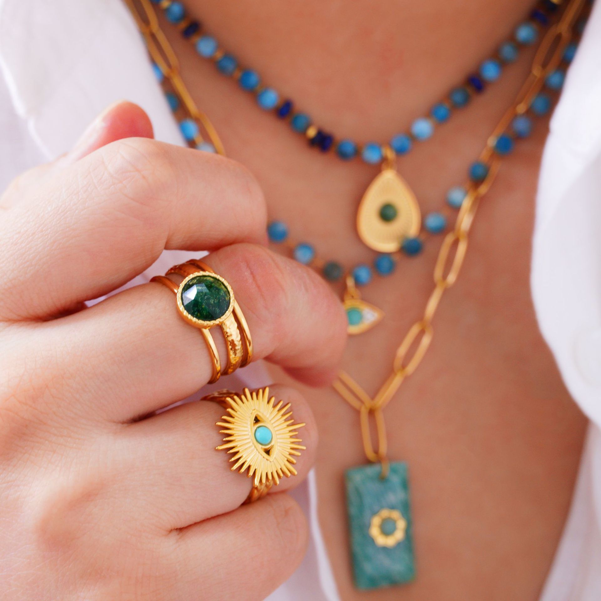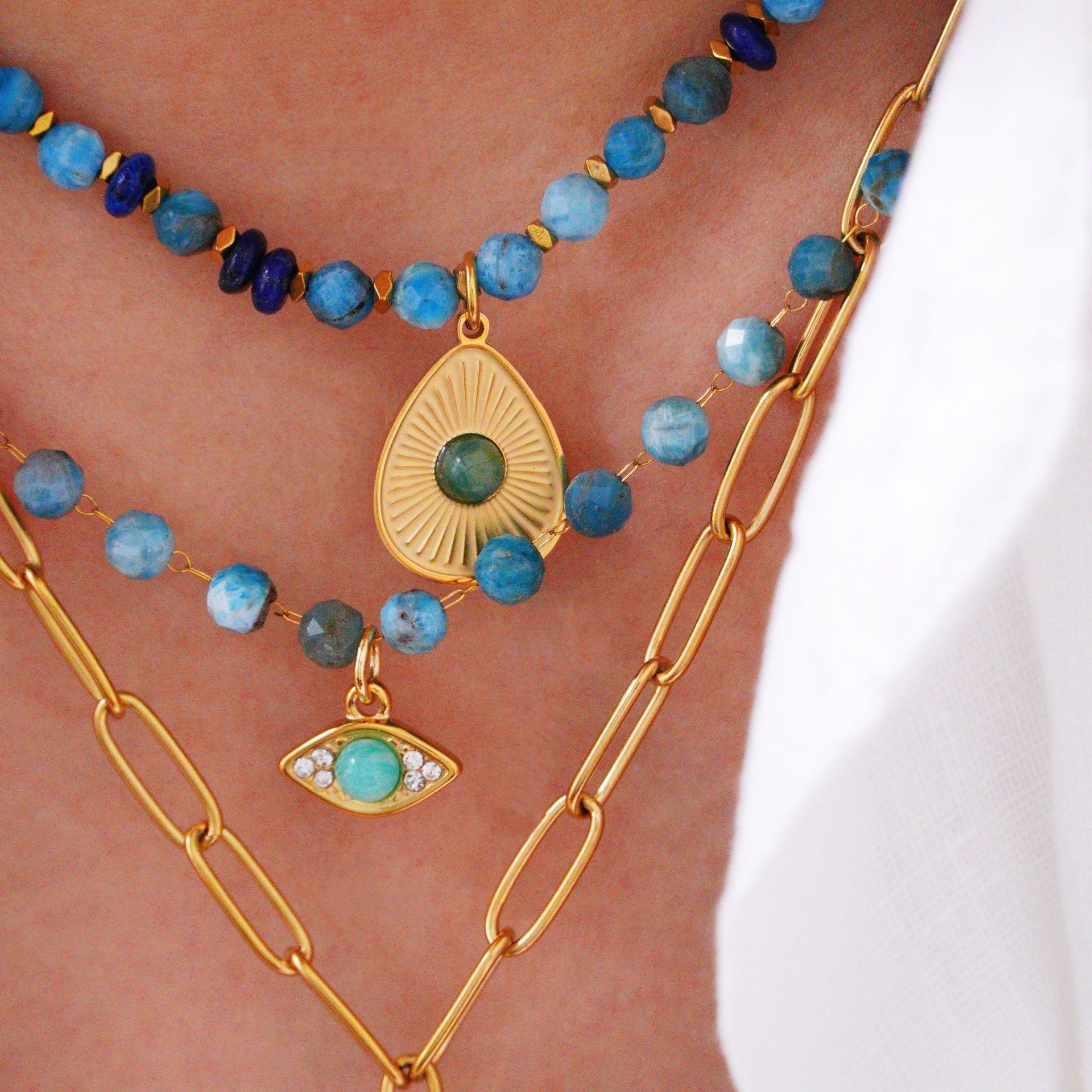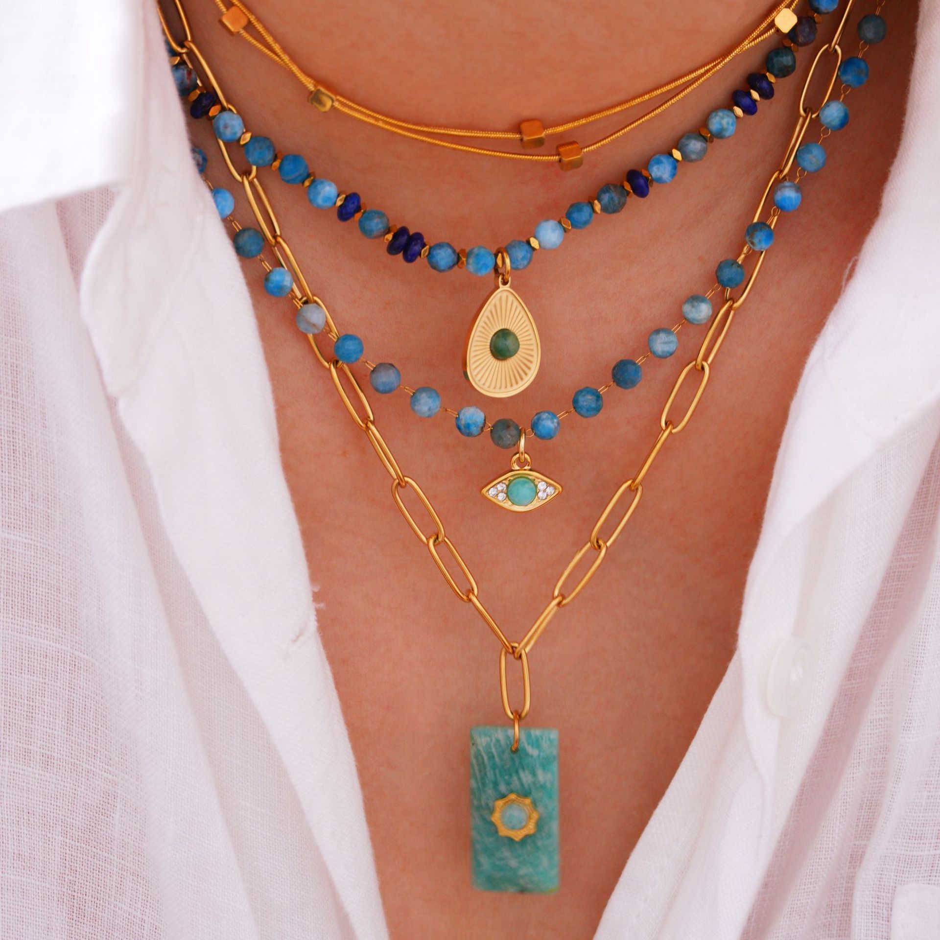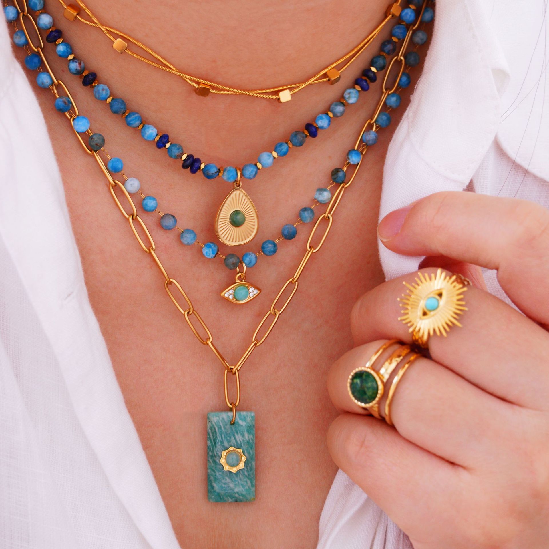 Titanium Steel Jewelry Set, with ​Amazonite​, gold color plated, different styles for choice & for woman, Sold By PC