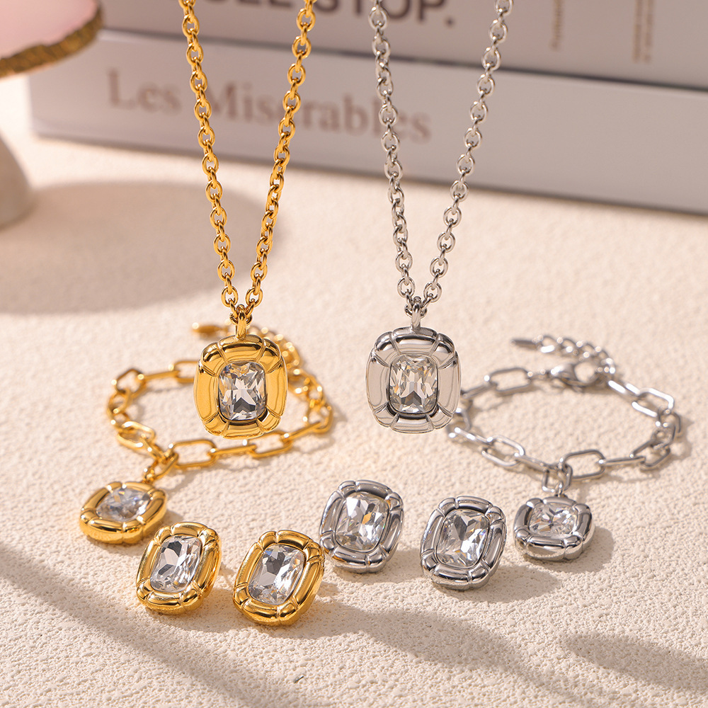 Titanium Steel Jewelry Set, with Glass Stone, plated, fashion jewelry & different styles for choice & for woman, Sold By PC