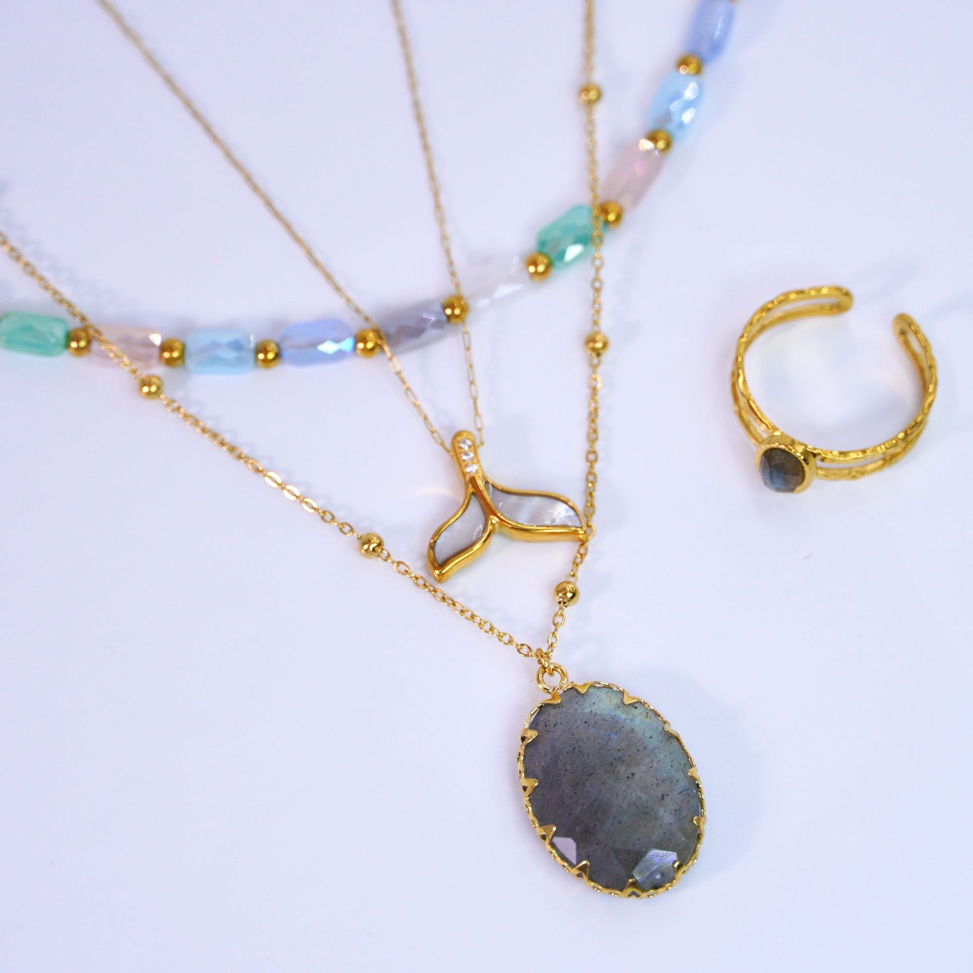 Titanium Steel Jewelry Set, with Labradorite, gold color plated, different styles for choice & for woman & with rhinestone, Sold By PC