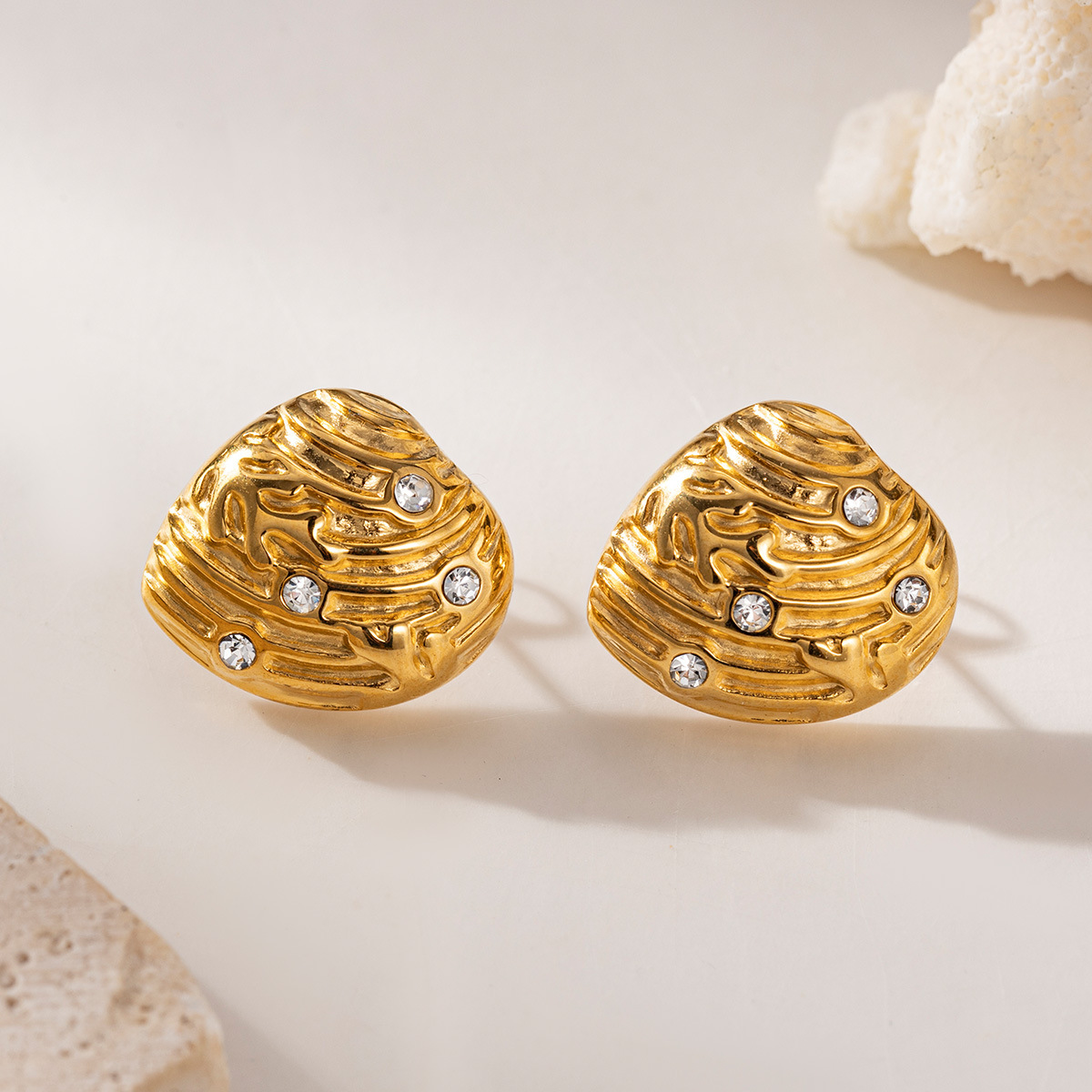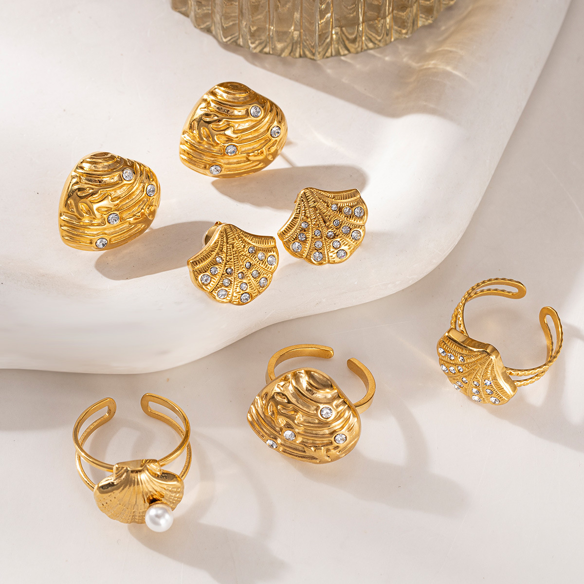 Titanium Steel Jewelry Set, with Plastic Pearl, gold color plated, fashion jewelry & micro pave cubic zirconia, more colors for choice, Sold By PC