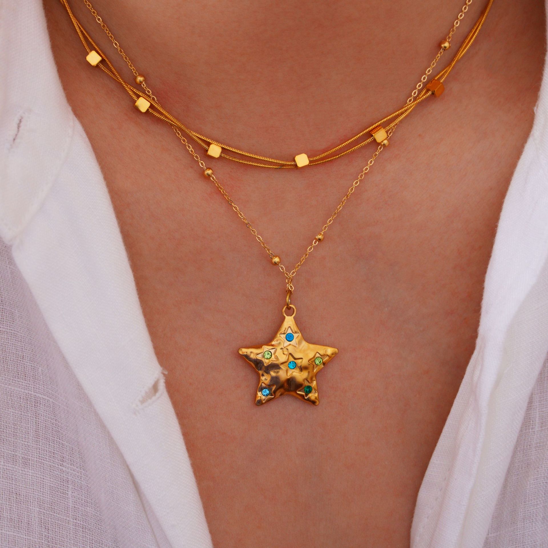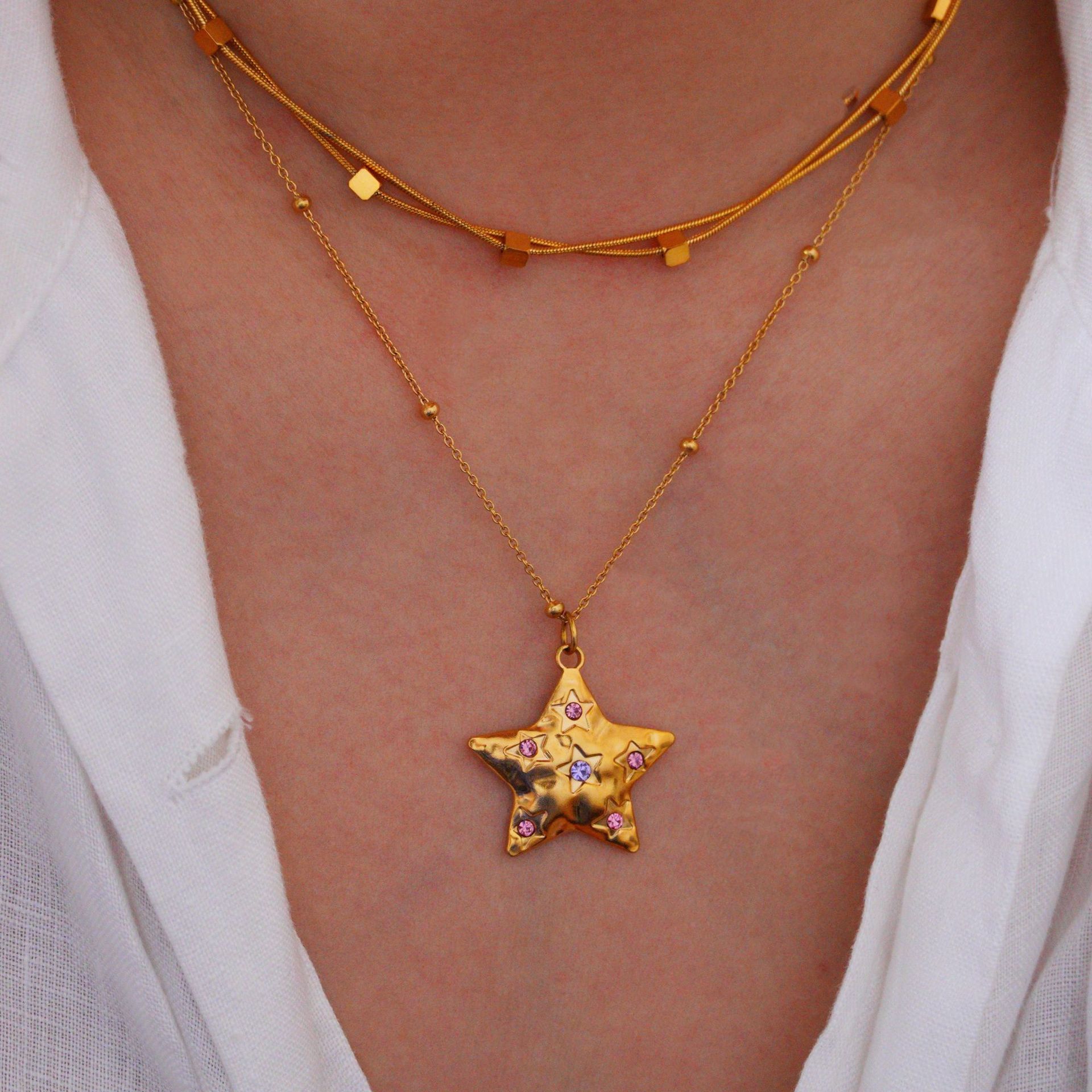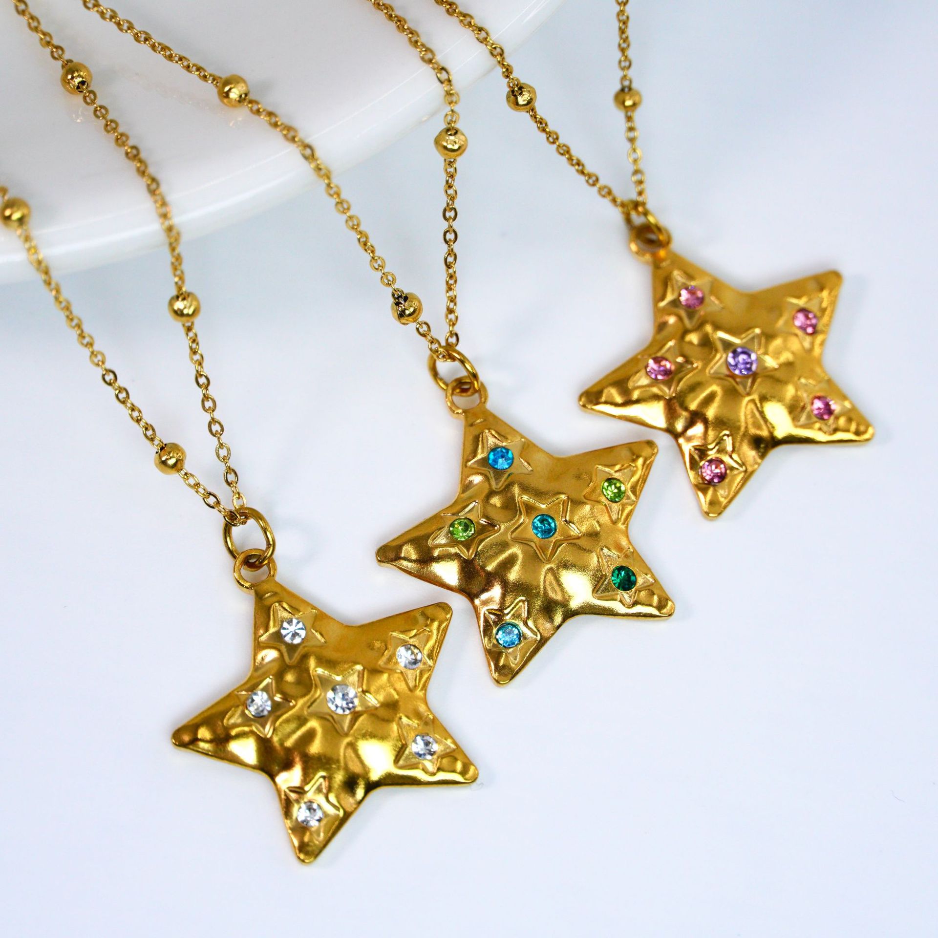 Titanium Steel Necklace, Star, gold color plated, for woman & with rhinestone, more colors for choice, Length:Approx 16-18 Inch, Sold By PC