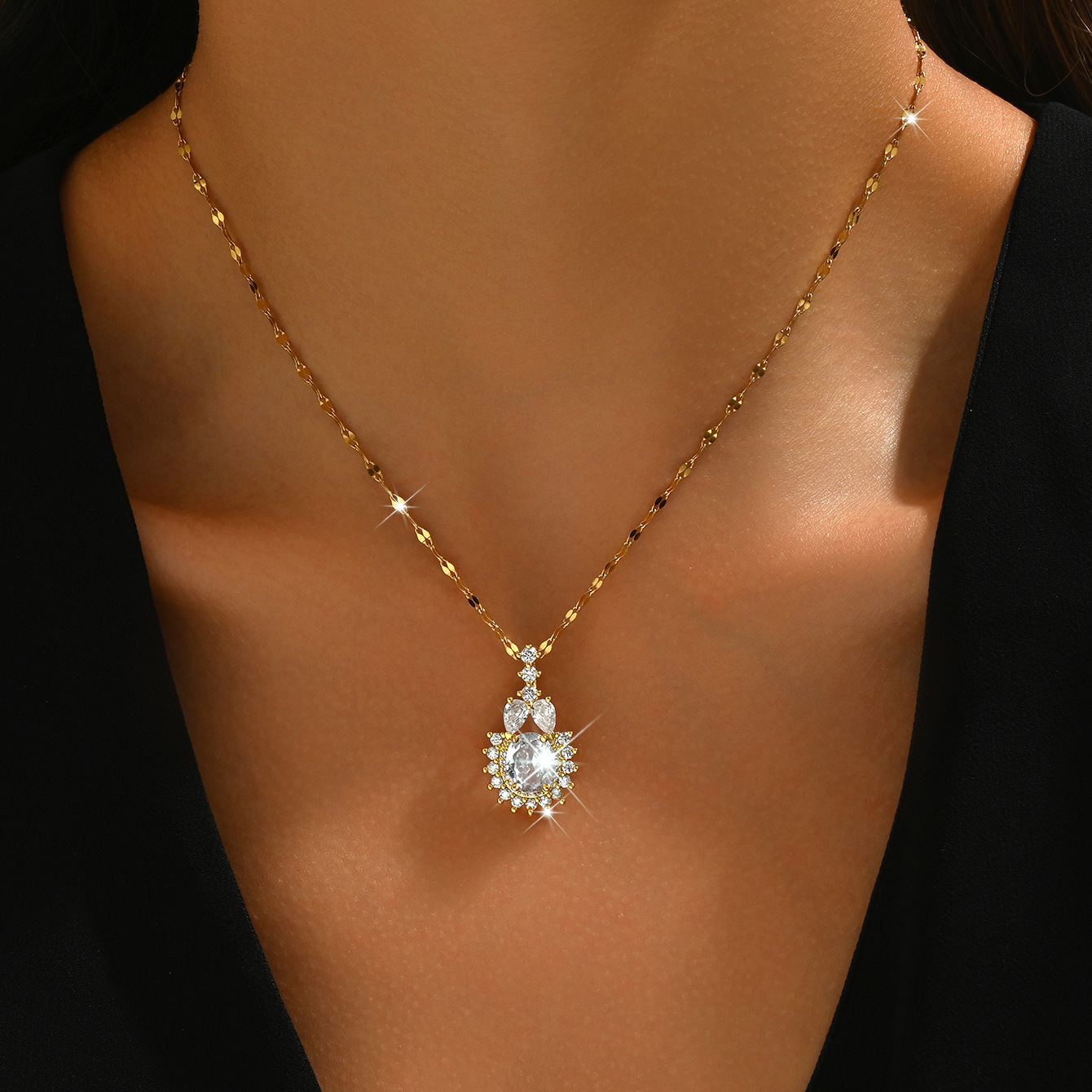 Titanium Steel Jewelry Necklace, Heart, plated, oval chain & with cubic zirconia Approx 16 Inch