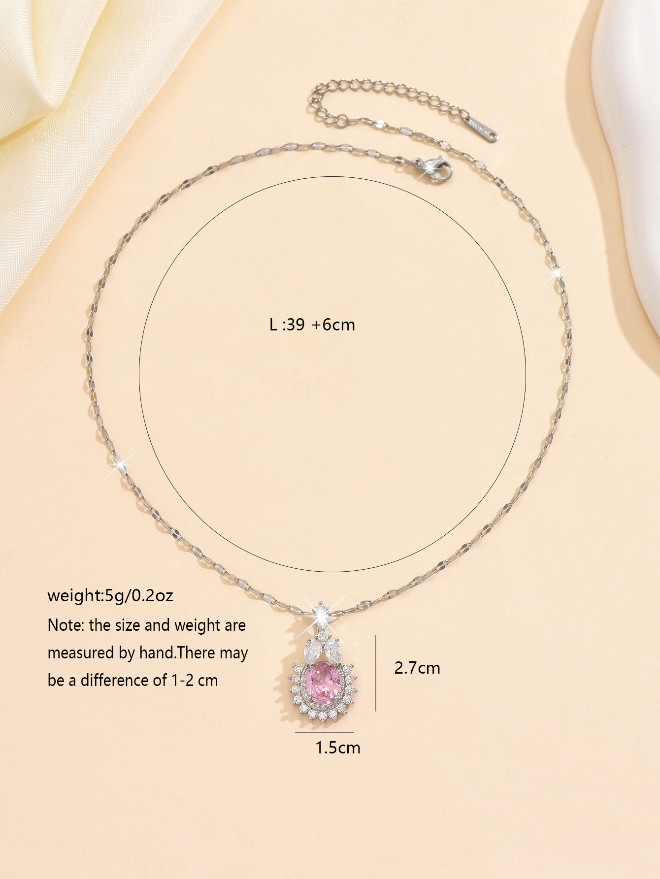 Titanium Steel Jewelry Necklace, Square, plated, oval chain & with cubic zirconia 7mm Approx 17 Inch