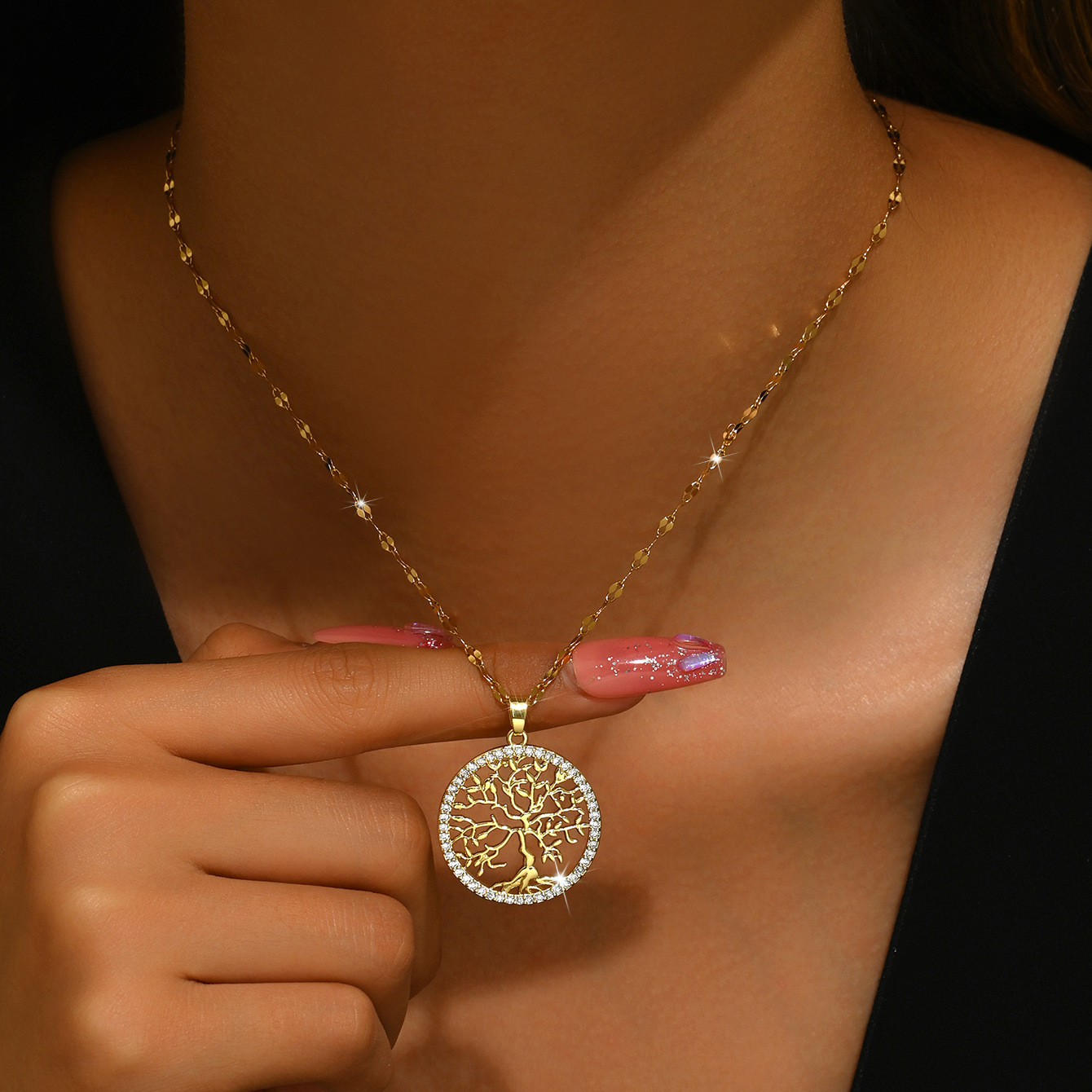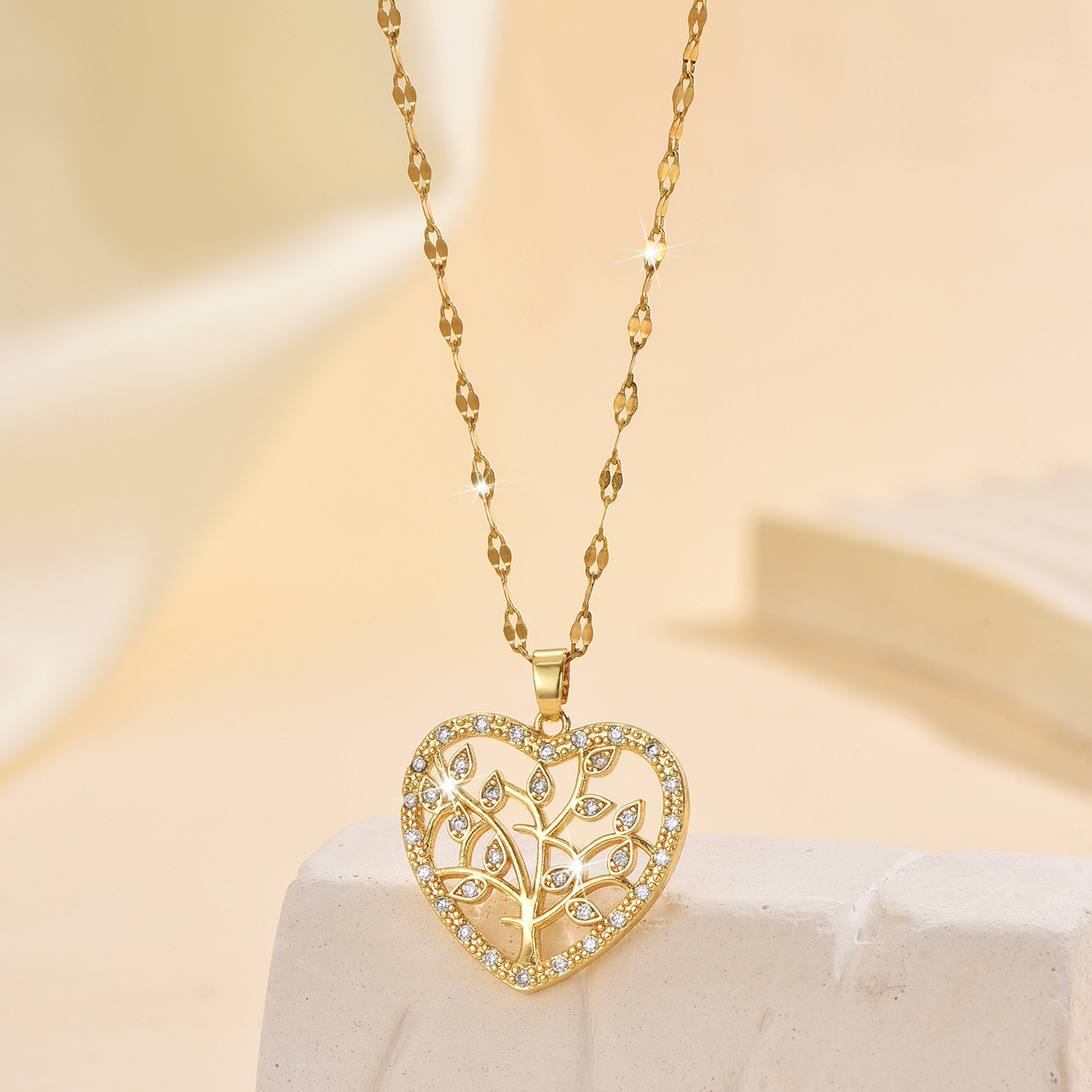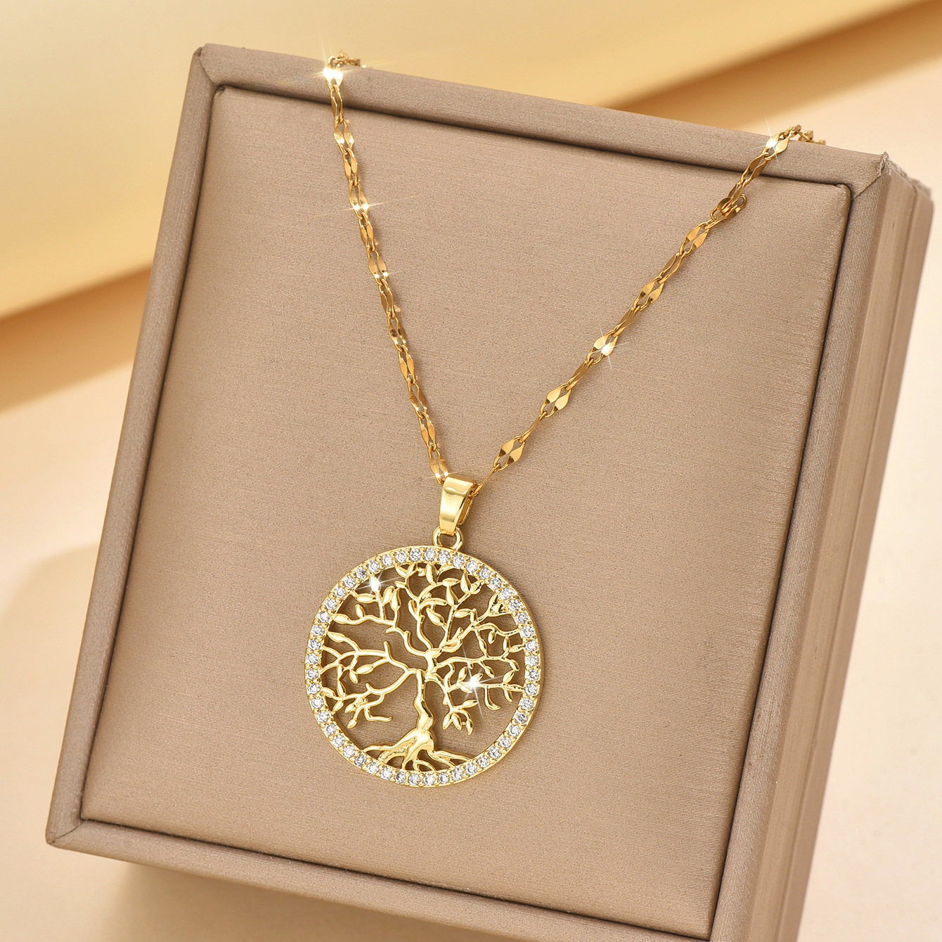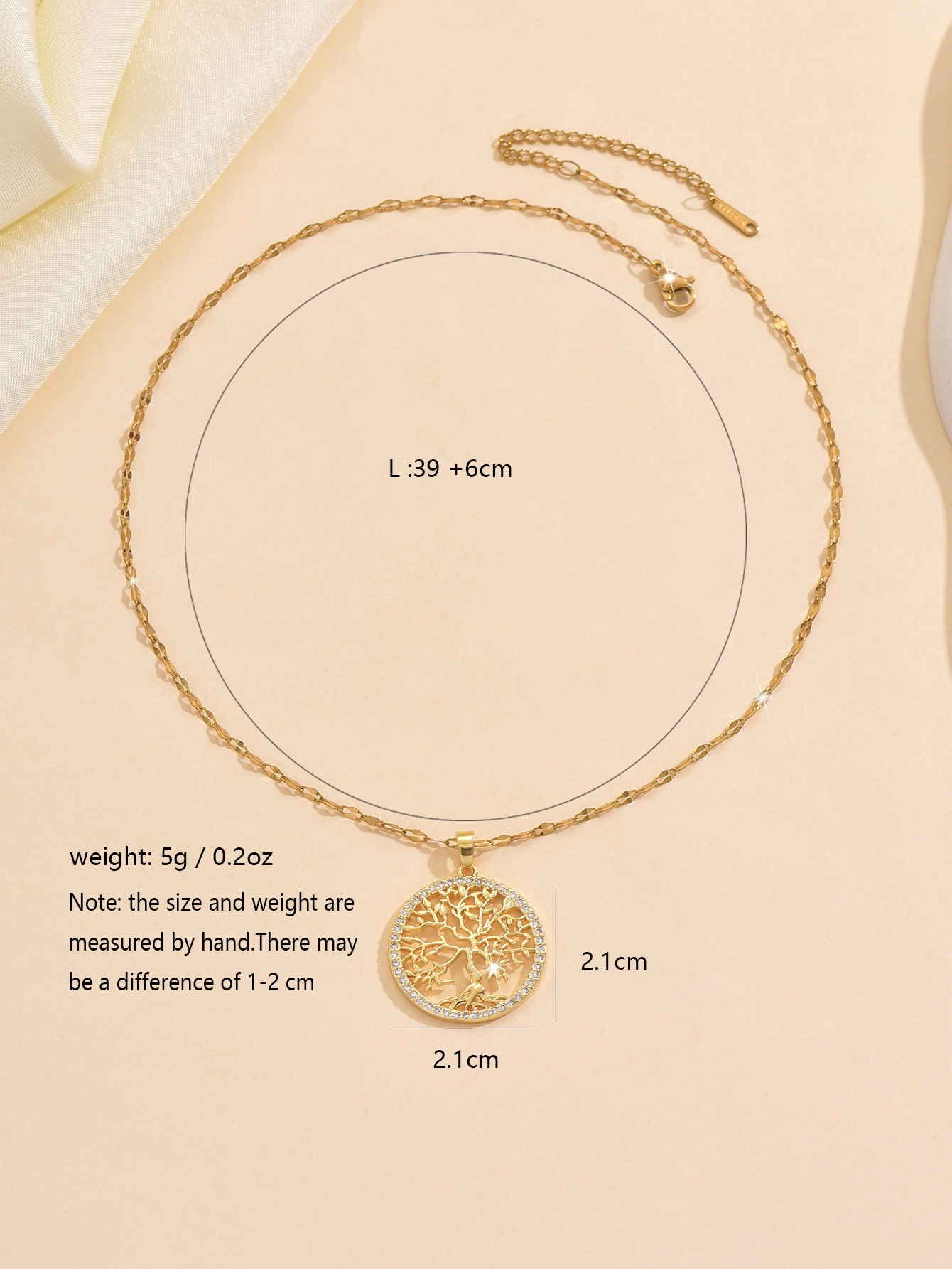Titanium Steel Necklace, with 2.4inch extender chain, Tree, gold color plated, different styles for choice & for woman & with rhinestone, Length:Approx 15.4 Inch, Sold By PC