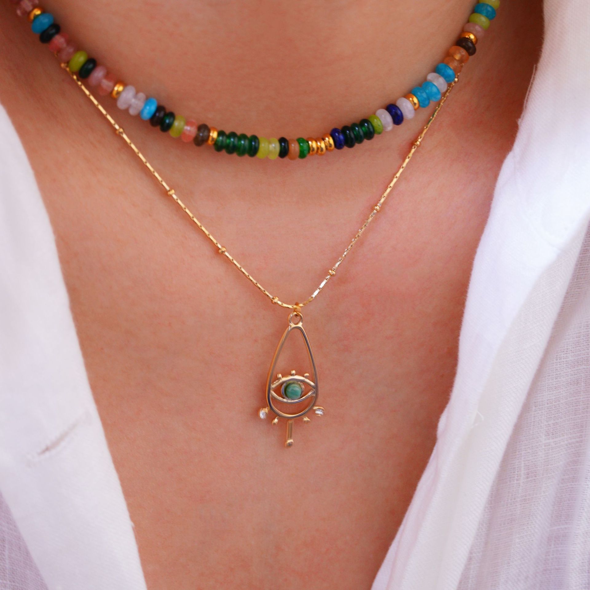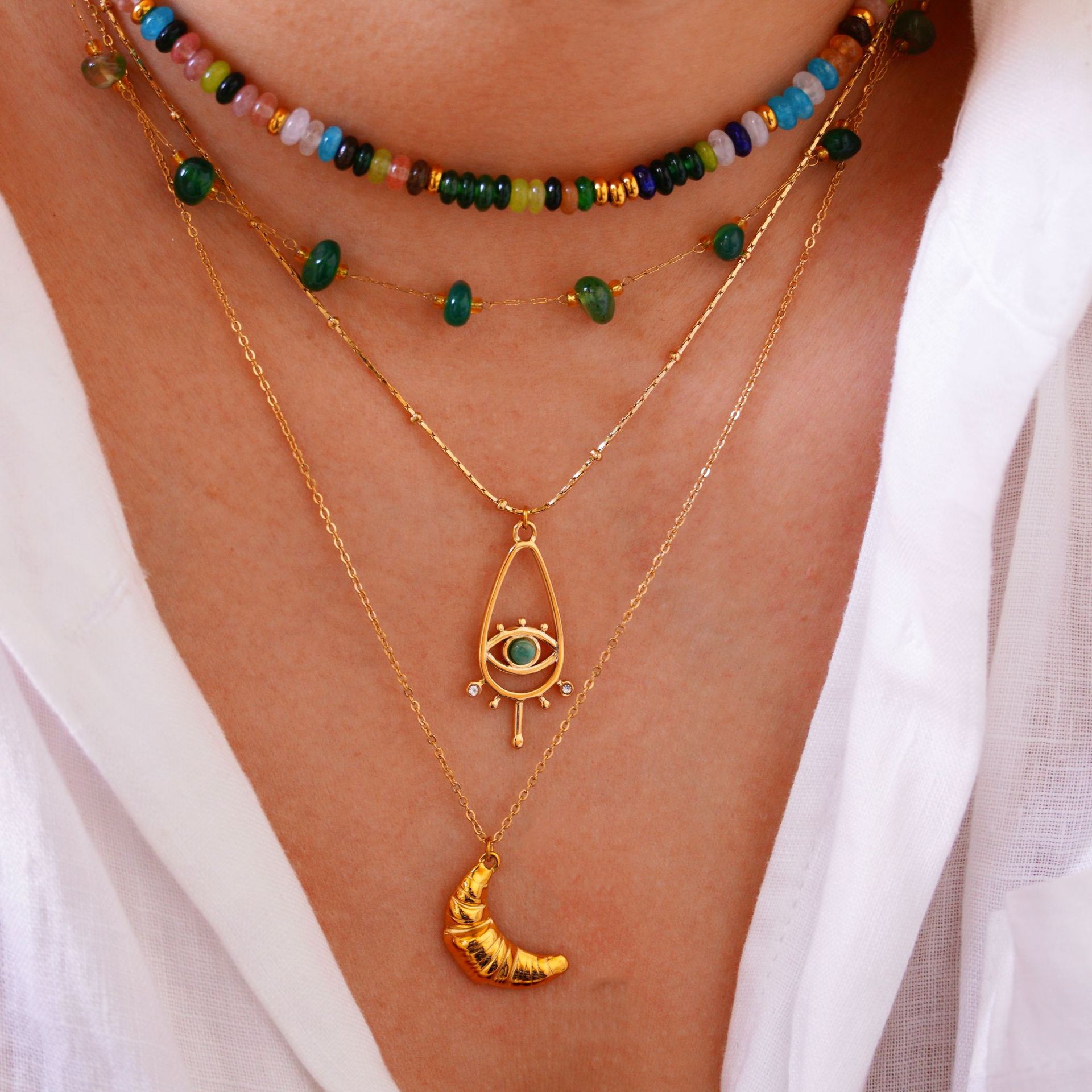Titanium Steel Necklace, with Jade & Natural Stone, gold color plated, different styles for choice & for woman, Length:Approx 16-18 Inch, Sold By PC