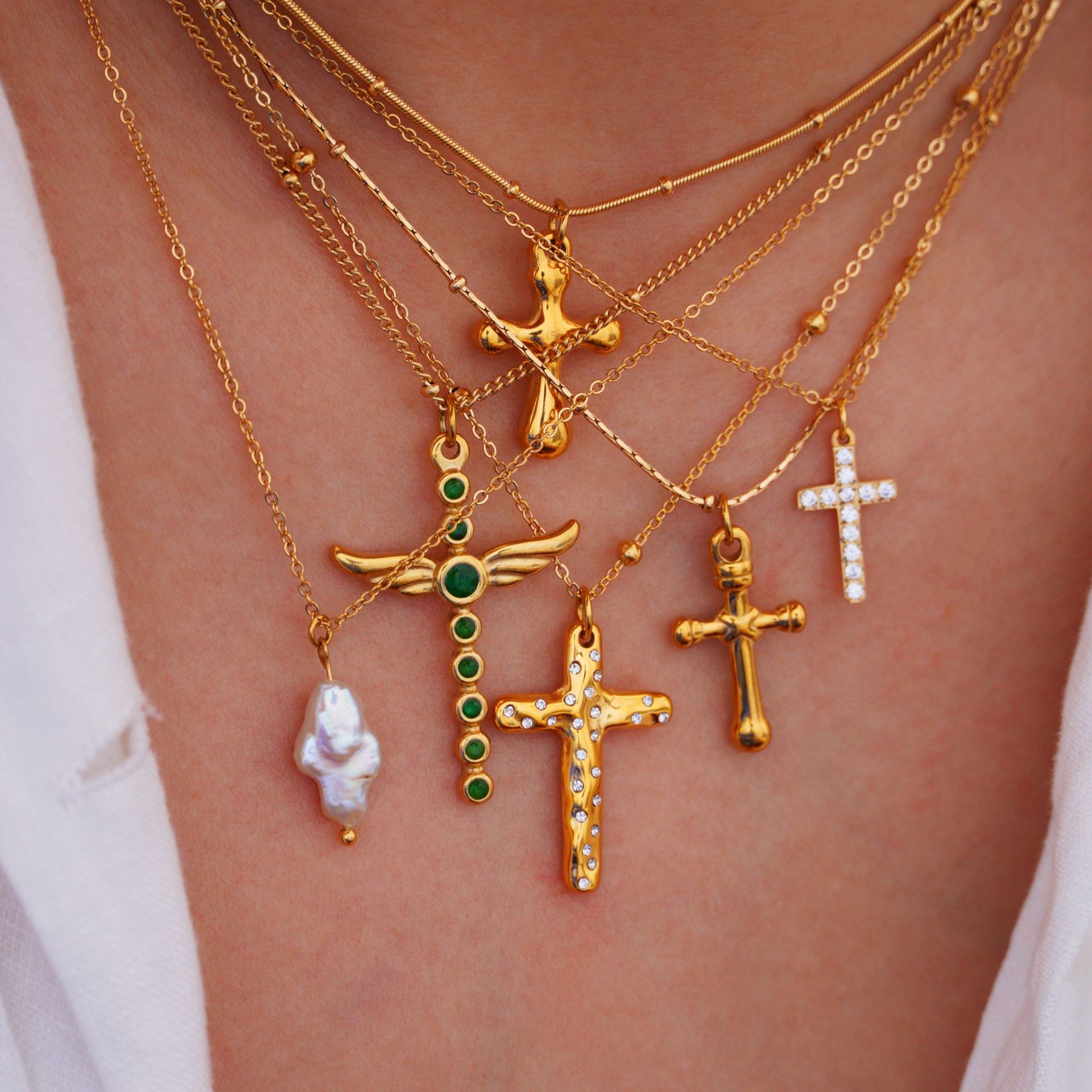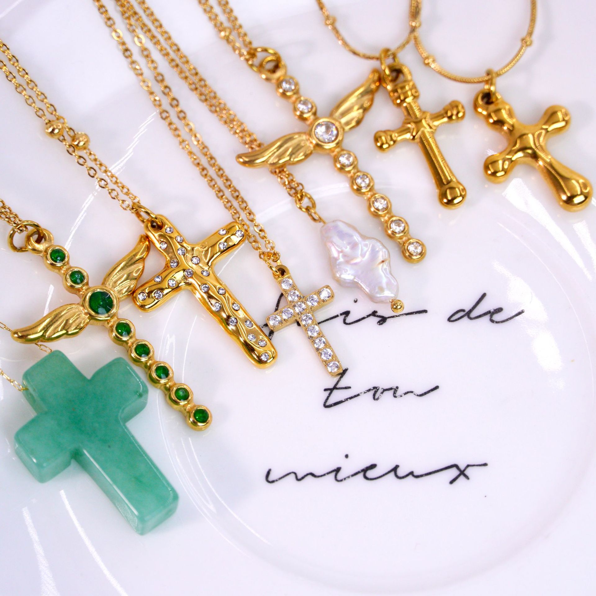 Titanium Steel Necklace, with Natural Stone, Cross, gold color plated, different styles for choice & for woman & with rhinestone, Length:Approx 16-18 Inch, Sold By PC