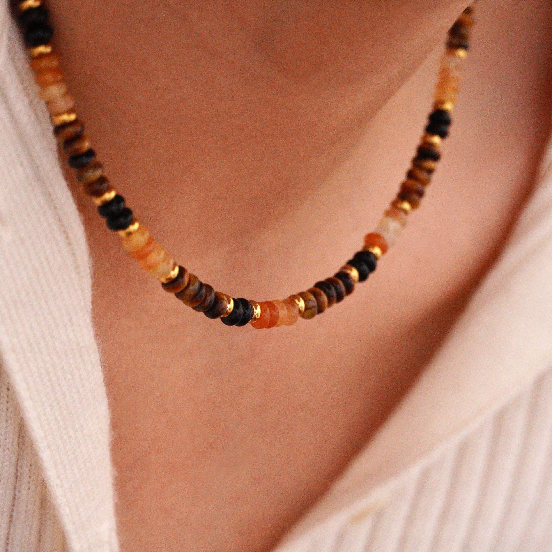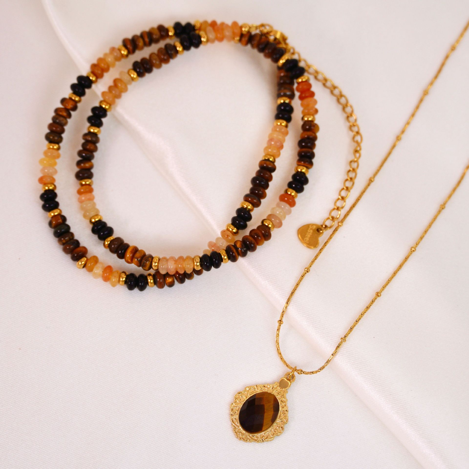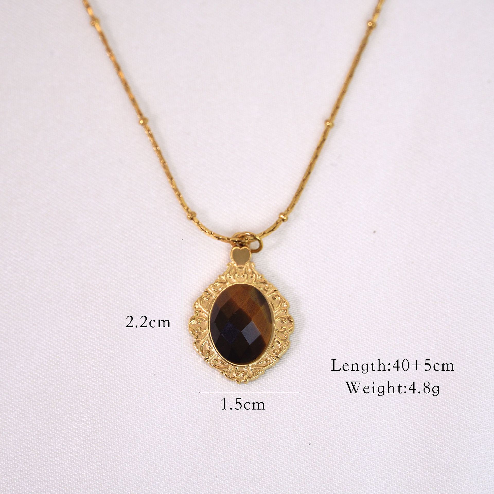 Titanium Steel Necklace, with Tiger Eye, gold color plated, different styles for choice & for woman, Sold By PC