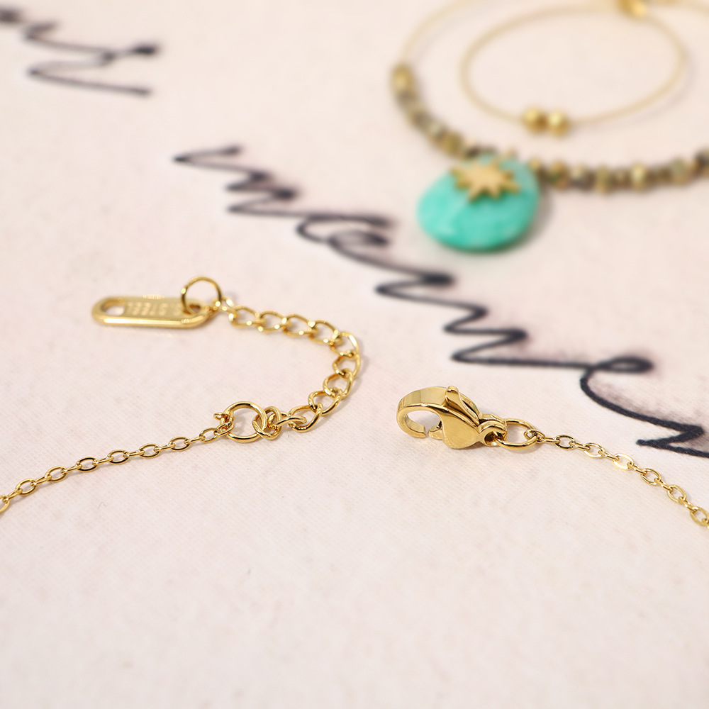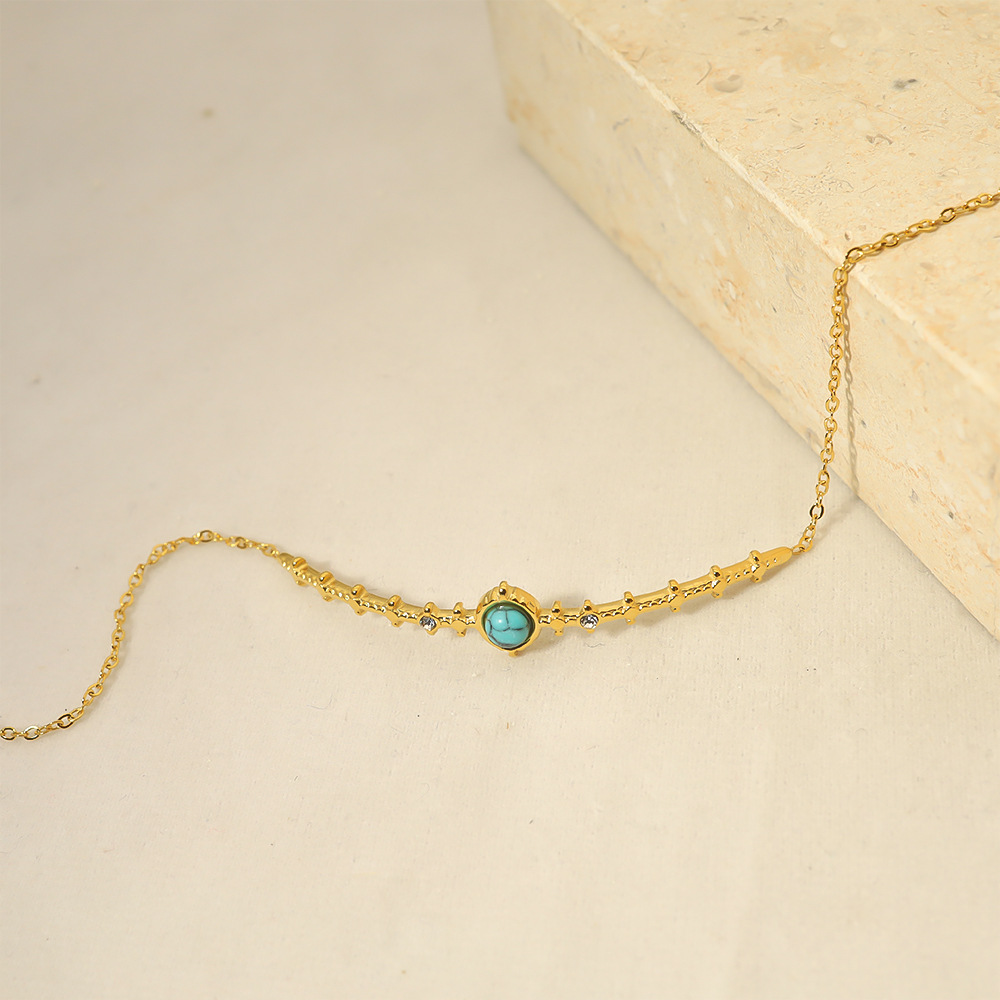 Turquoise Bracelets, 304 Stainless Steel, with turquoise, 18K gold plated, fashion jewelry & micro pave cubic zirconia & for woman, Sold By PC