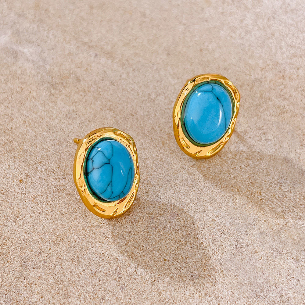 Turquoise Drop Earring, 304 Stainless Steel, with turquoise, polished, fashion jewelry & for woman, golden, Sold By Pair