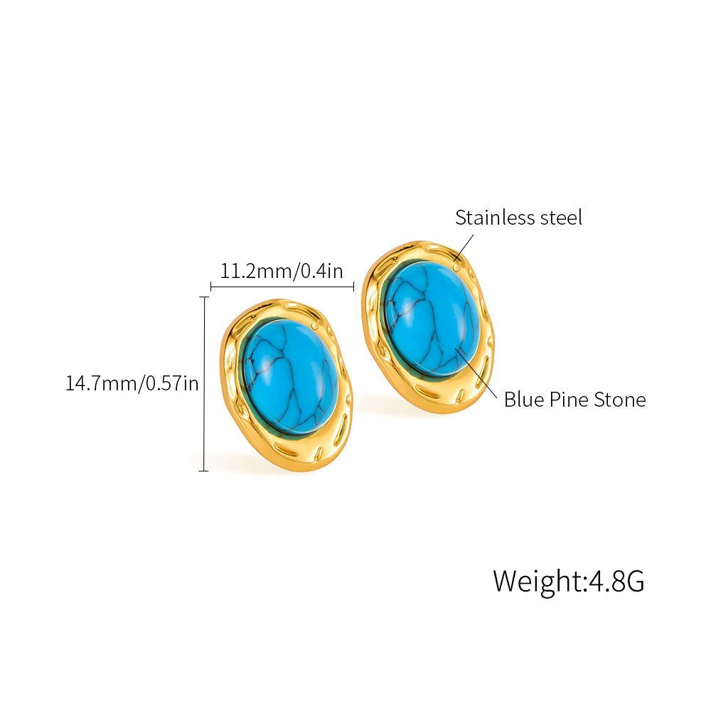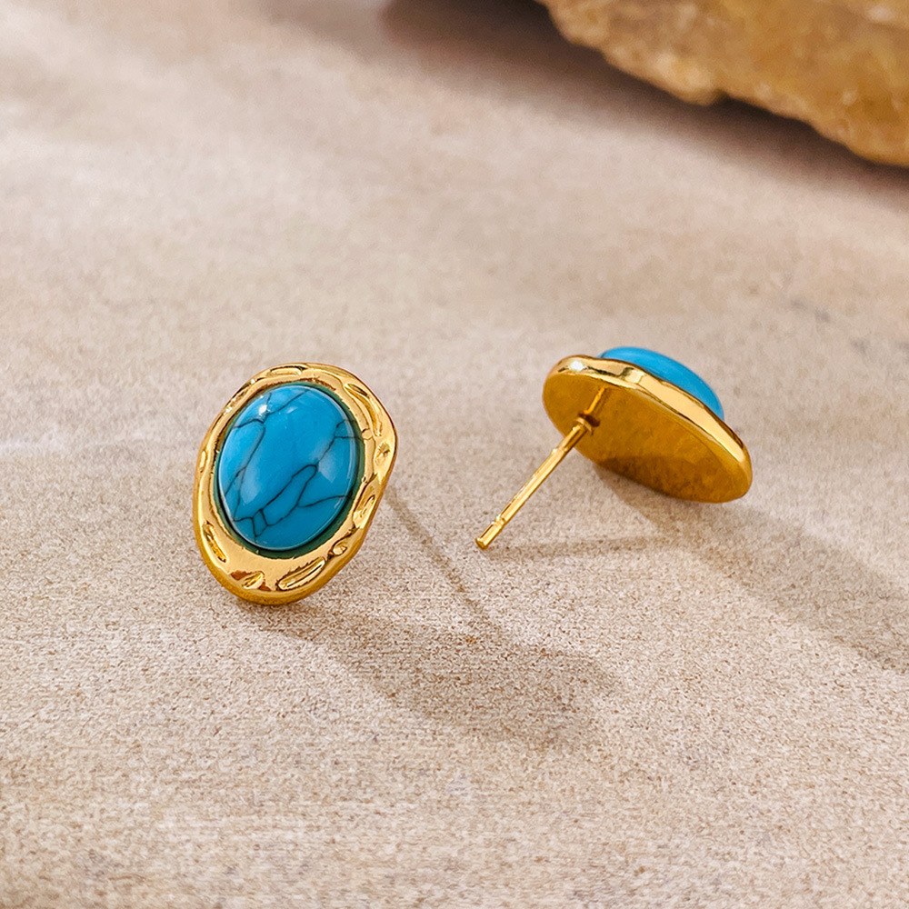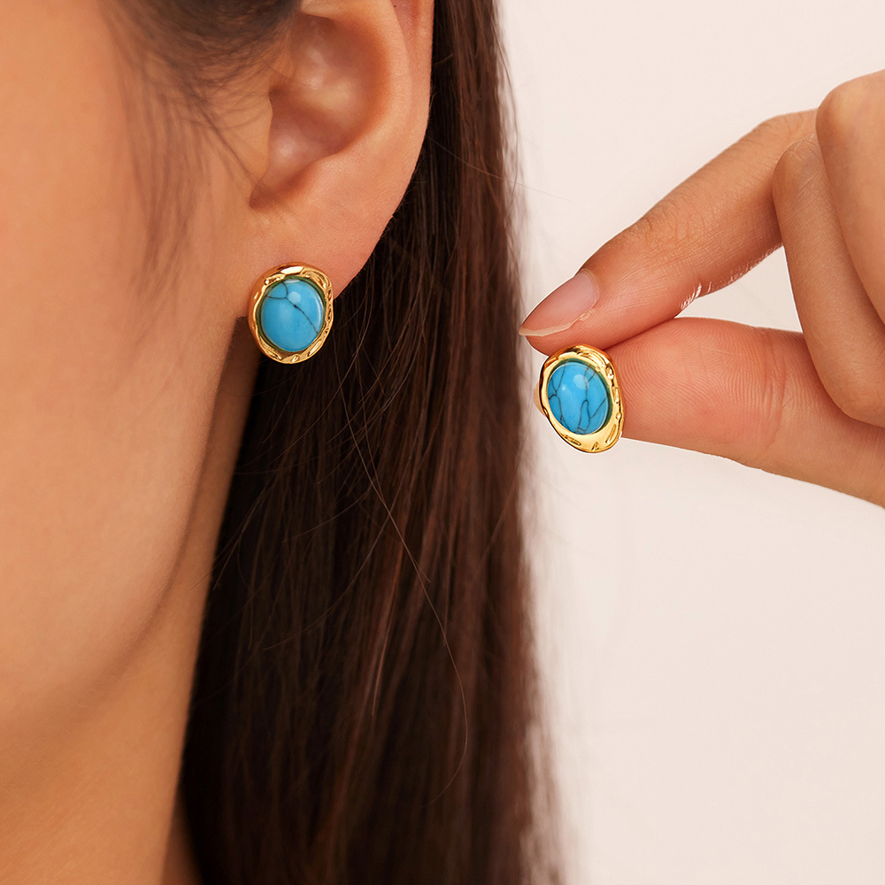 Natural Turquoise Stud Earring, sterling silver post pin, Round