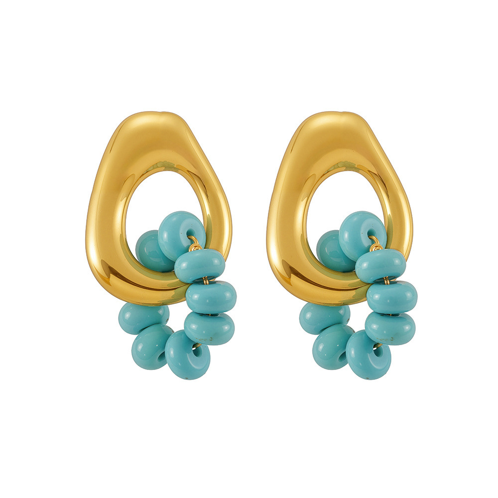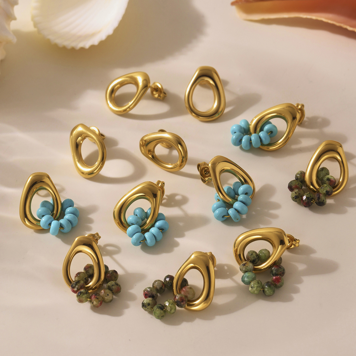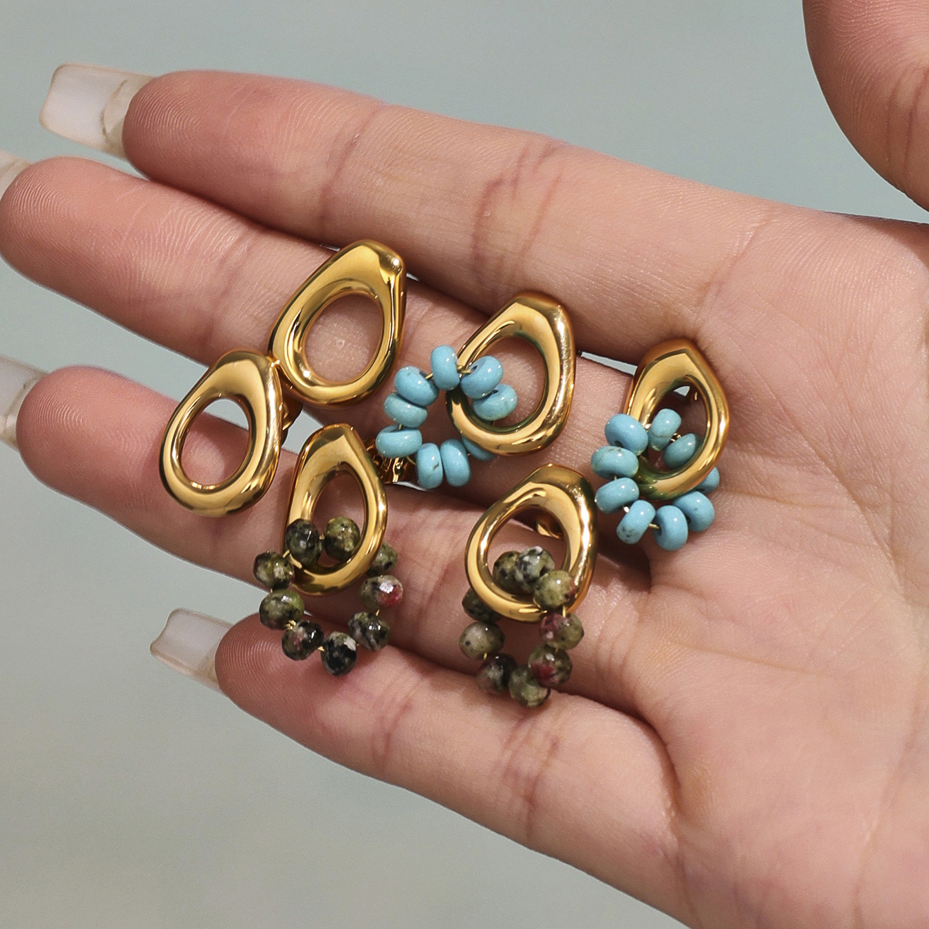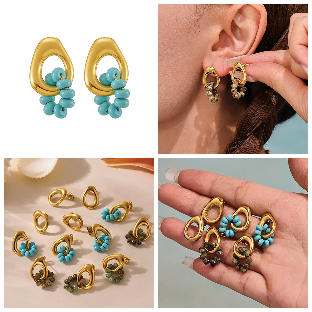 Turquoise Drop Earring, 304 Stainless Steel, with turquoise, 18K gold plated, different materials for choice & different styles for choice & for woman & hollow, Sold By Pair