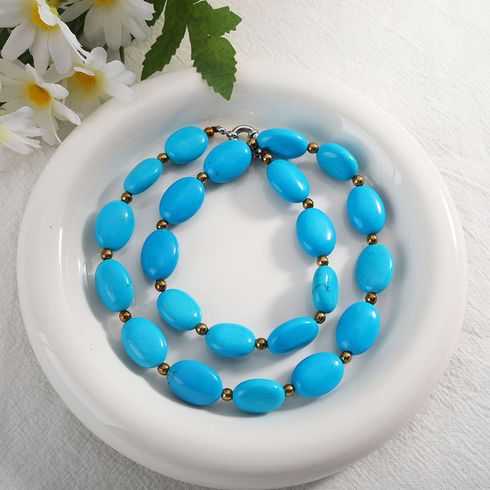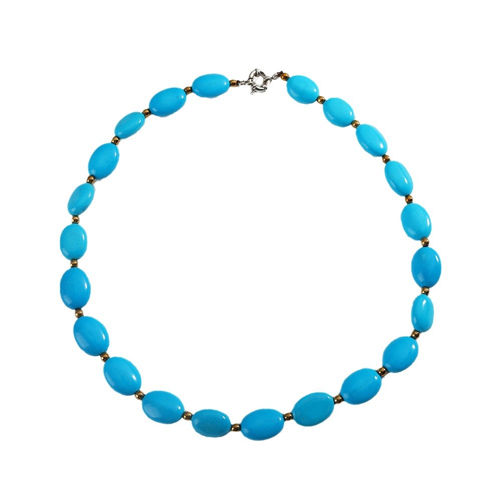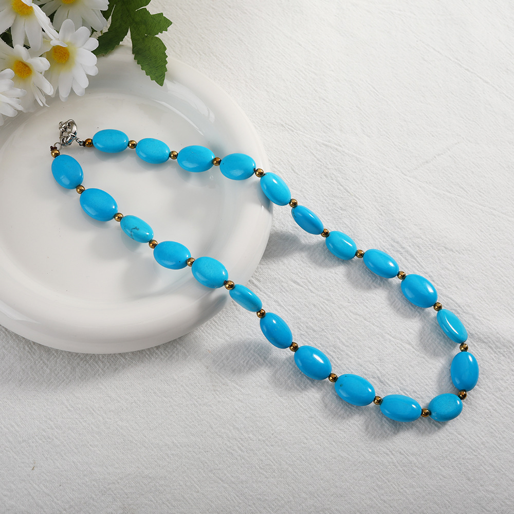 Turquoise Jewelry Necklace, Synthetic Turquoise, Flat Oval , blue Approx 46 Inch