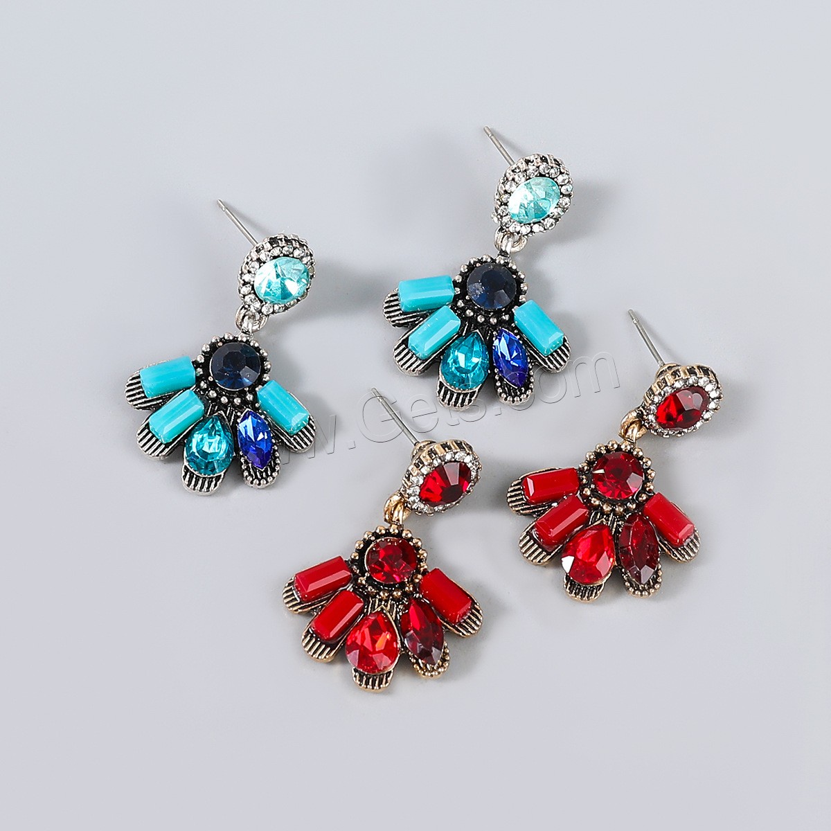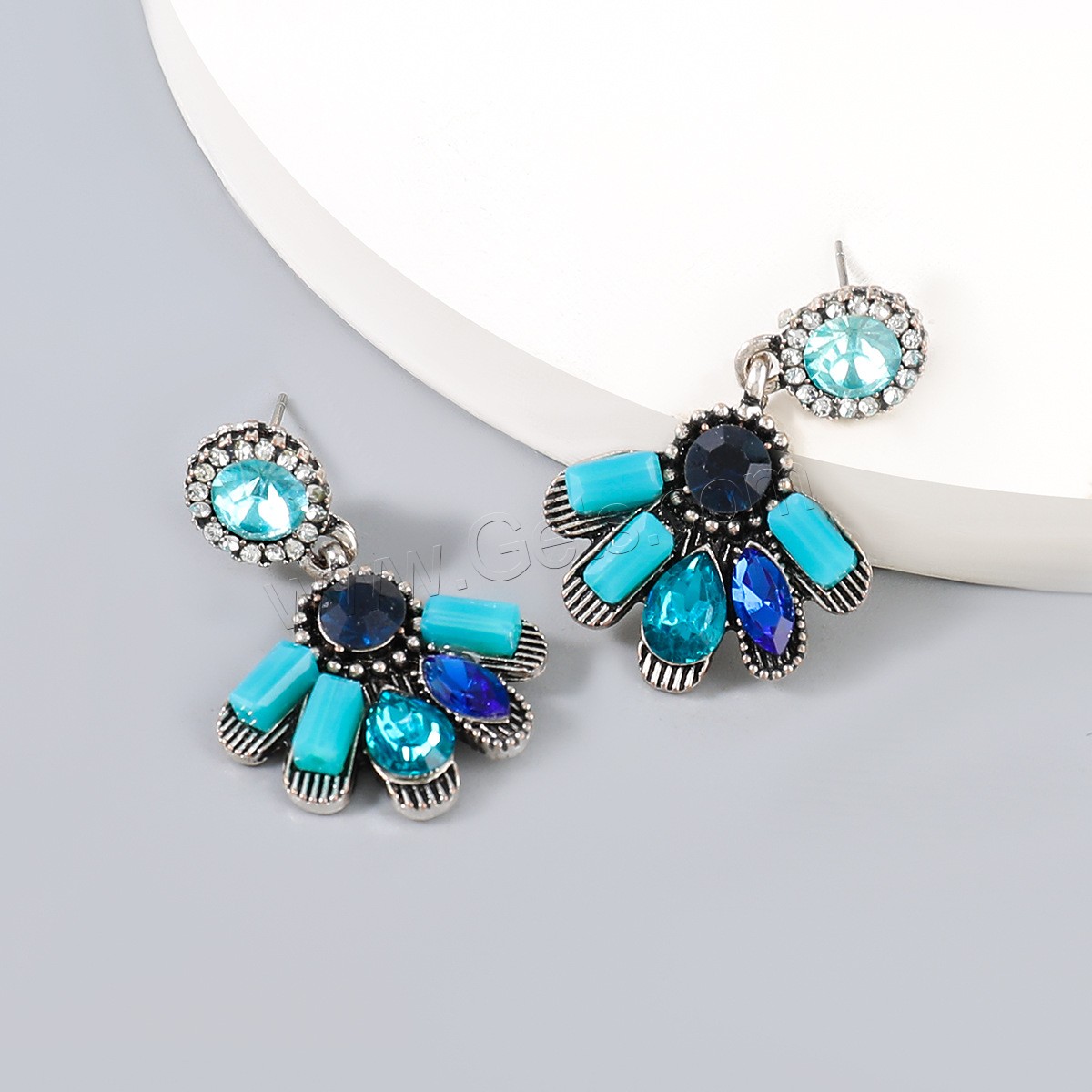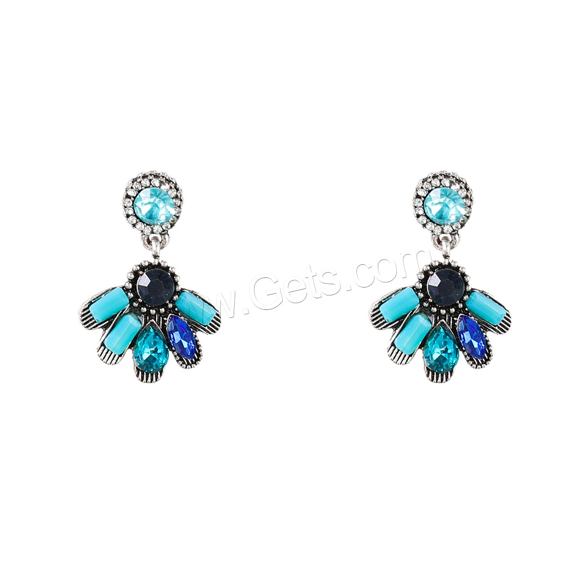 Turquoise Zinc Alloy Earring, with acrylic rhinestone & turquoise, fashion jewelry & for woman, more colors for choice, 37x24mm, Sold By Pair