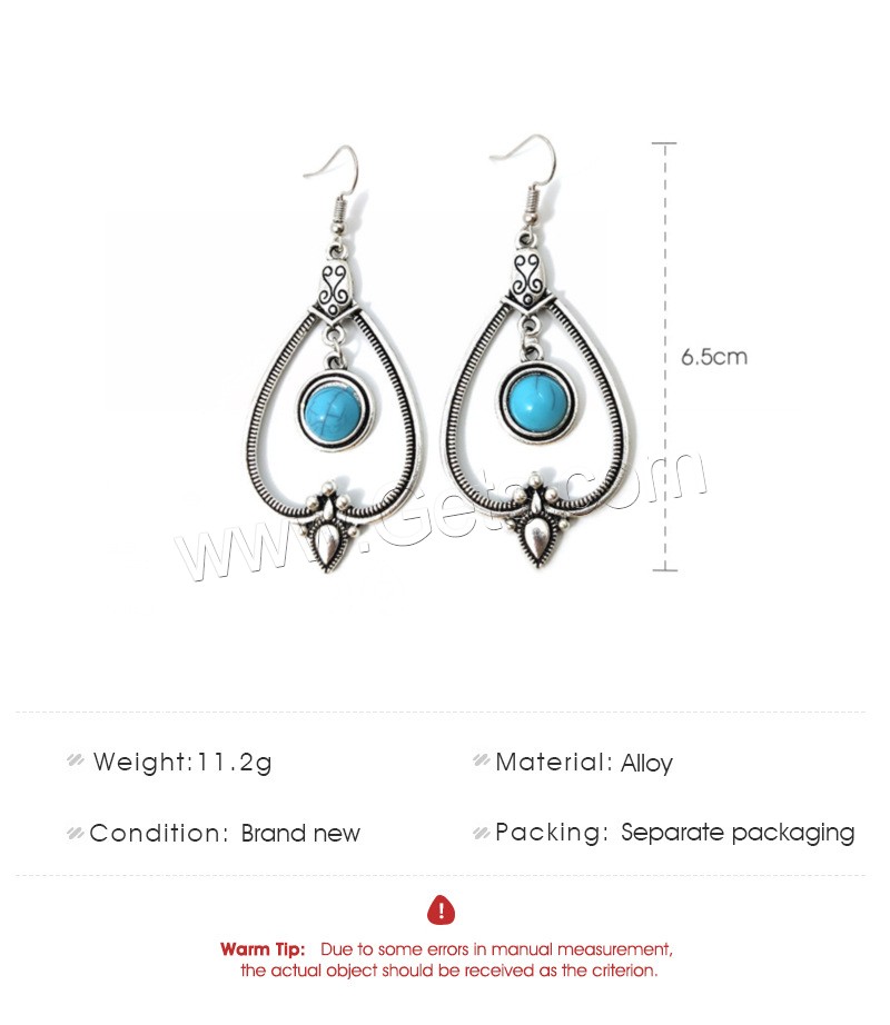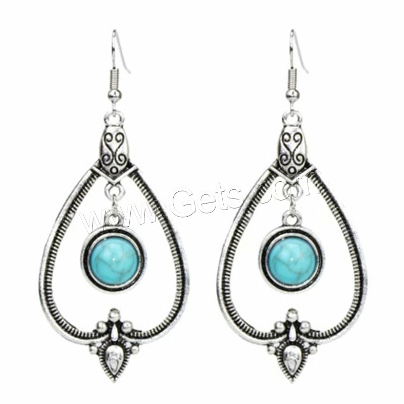 Turquoise Zinc Alloy Earring, with turquoise, plated, fashion jewelry & for woman, silver color, 65mm, Sold By Pair