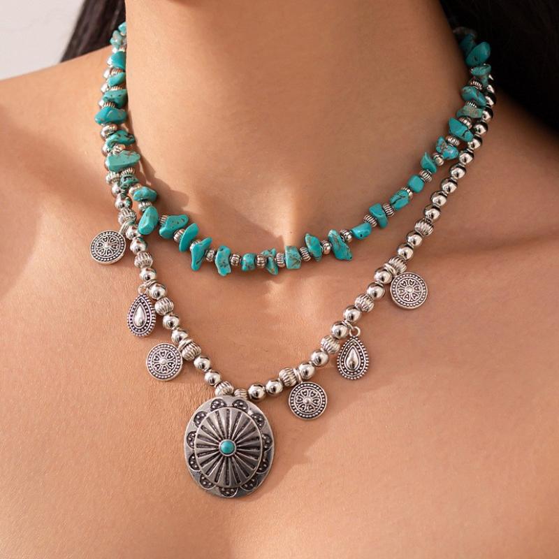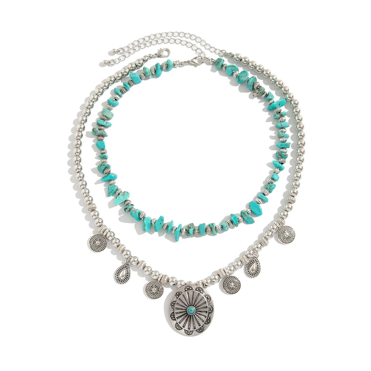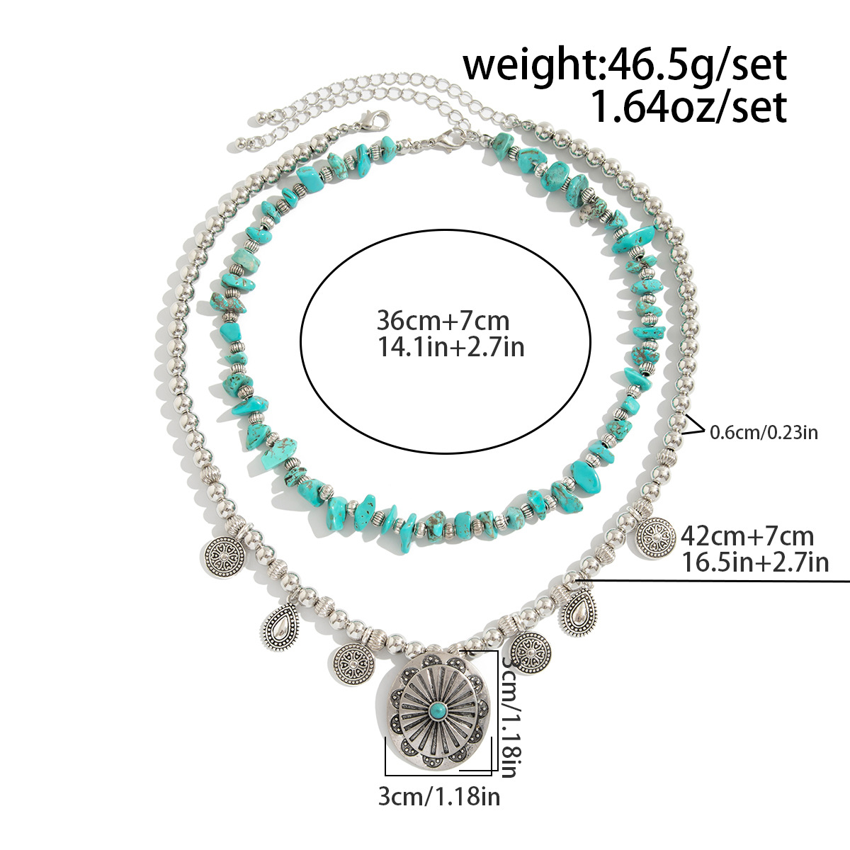 Turquoise Zinc Alloy Necklace, with turquoise & Copper Coated Plastic, plated, 2 pieces & fashion jewelry & for woman, platinum color, Sold By PC