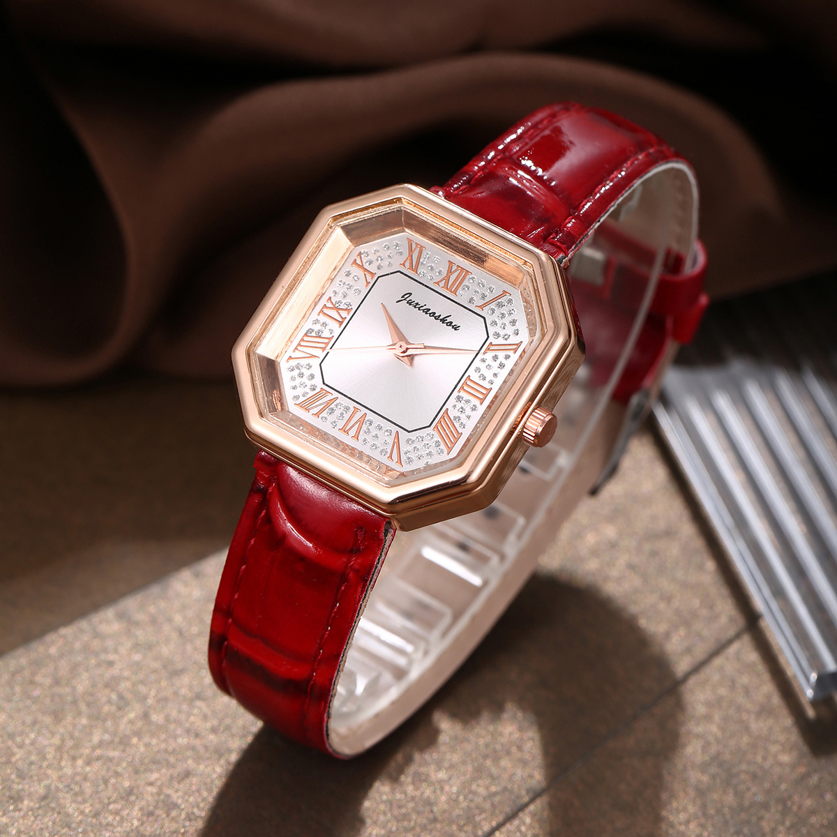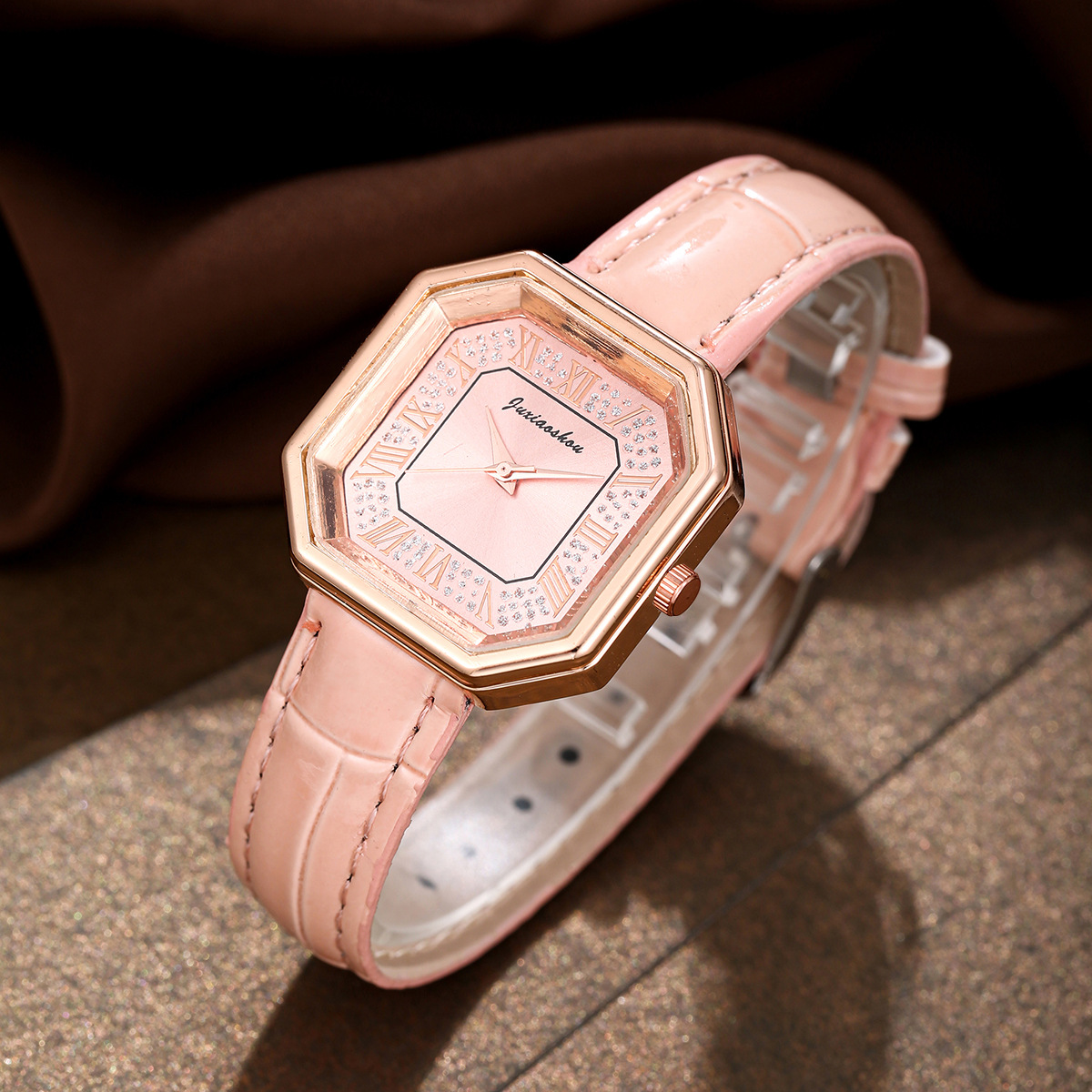 Women Wrist Watch, PU Leather, with Glass & Zinc Alloy, rose gold color plated, for woman & with rhinestone 40mm Approx 9 Inch