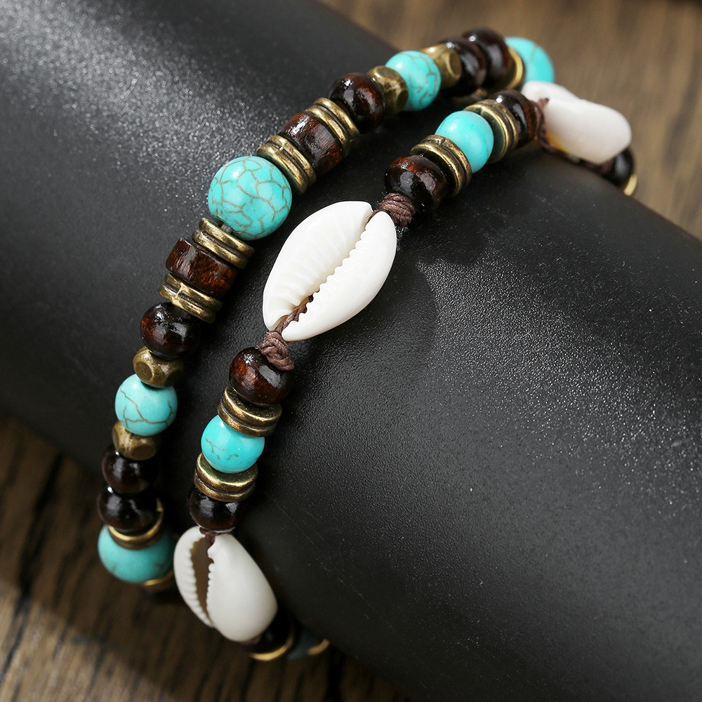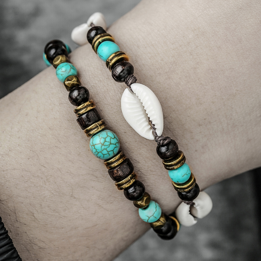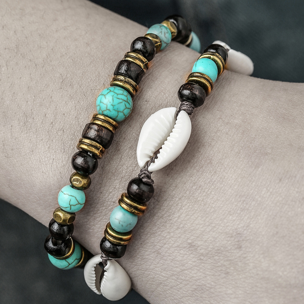 Wood Bracelet, with Synthetic Turquoise & Shell & Zinc Alloy, handmade, fashion jewelry, more colors for choice, Sold By Strand