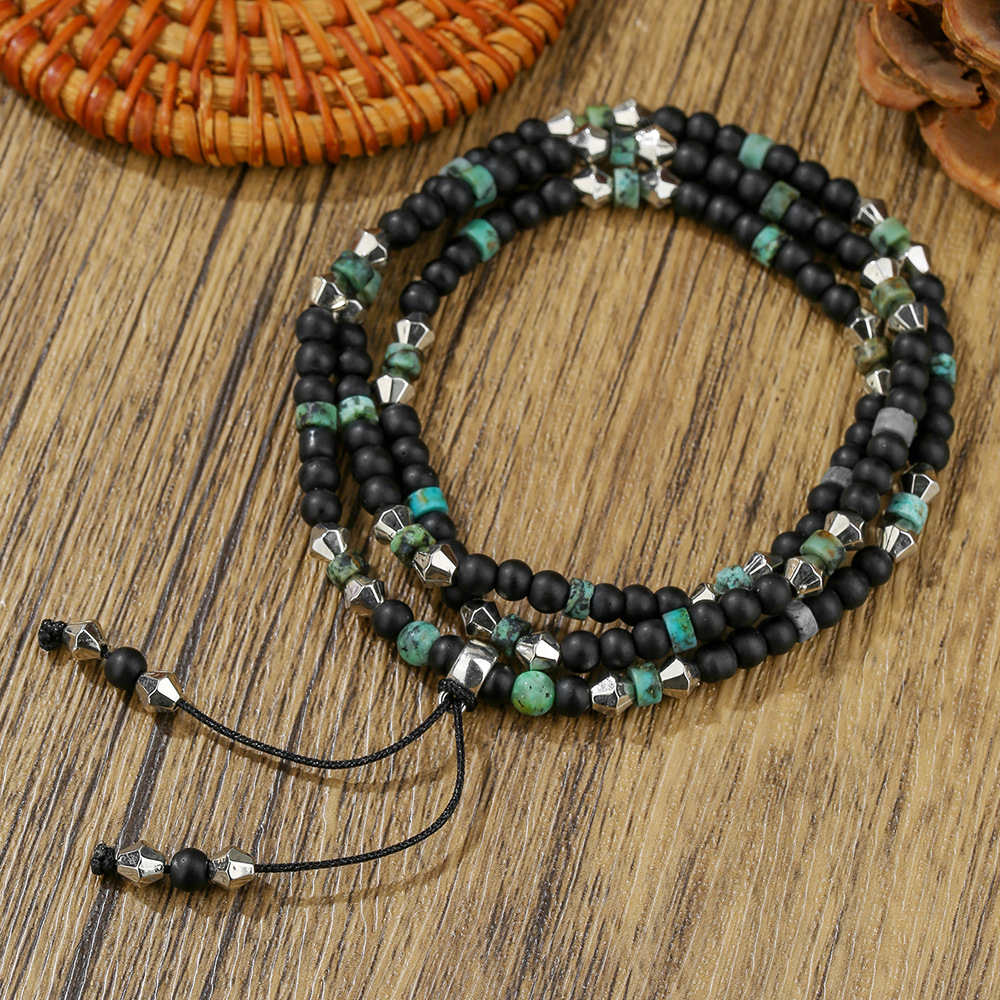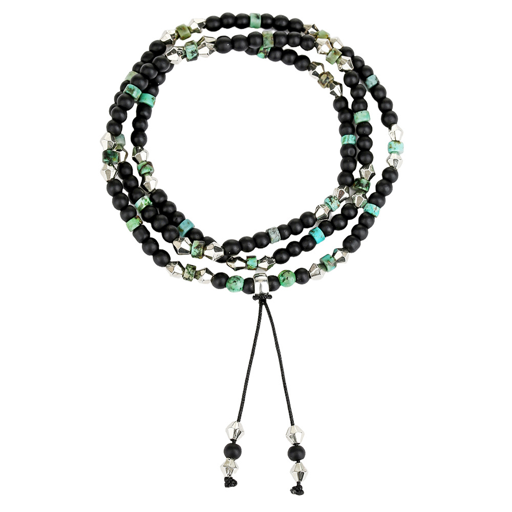 Dyed Marble Wrap Bracelet, with Cowhide & Synthetic Turquoise & Crystal, brass clasp, platinum color plated  & faceted, 7mm, 4mm Inch