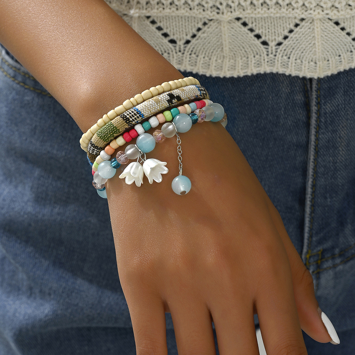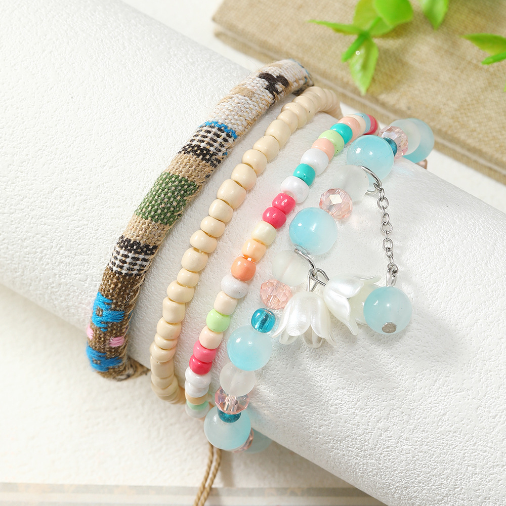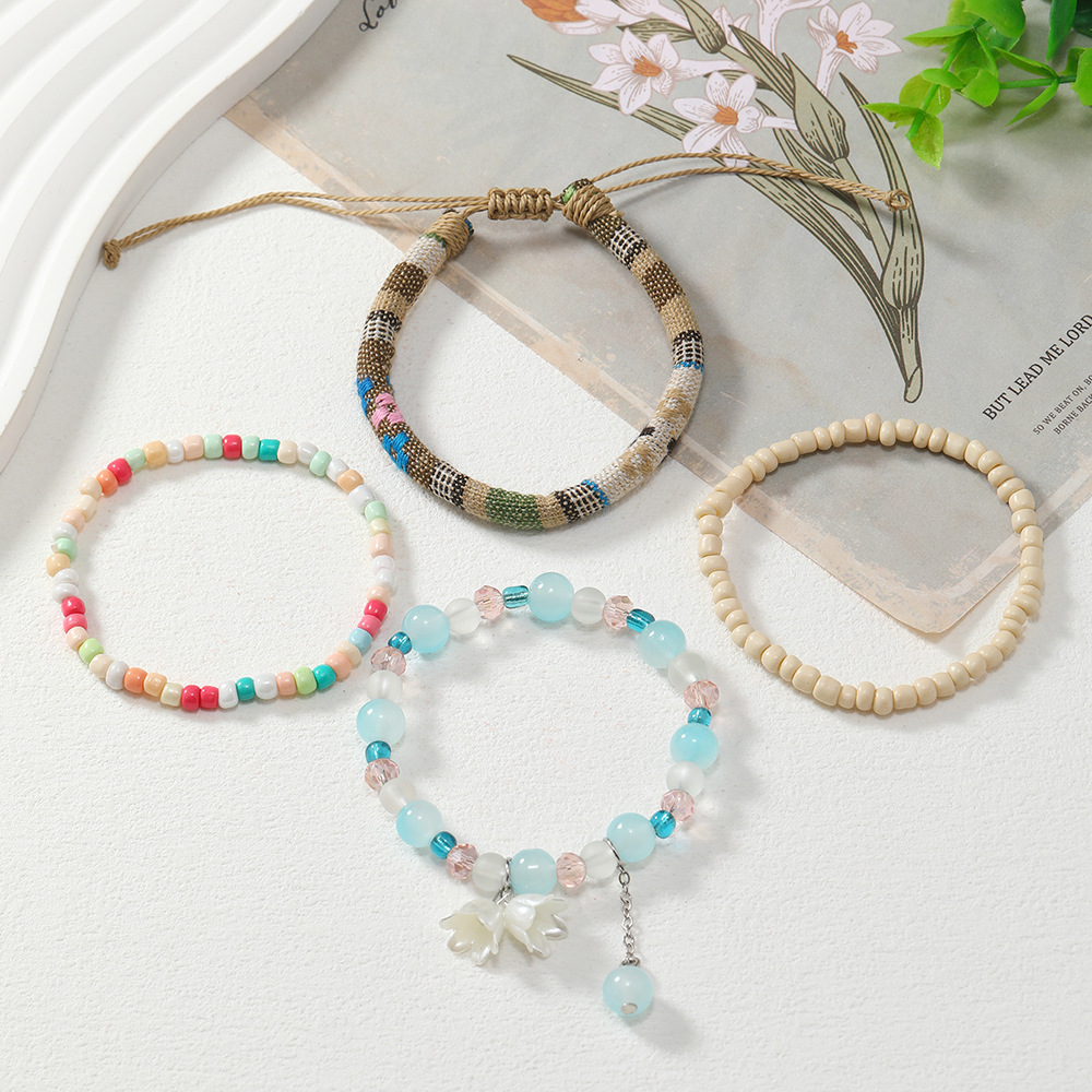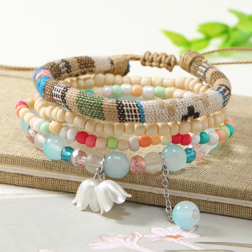 Wrap Bracelets, Seedbead, with Polyester & Zinc Alloy, handmade, 4 pieces & fashion jewelry & for woman, mixed colors, Sold By Set