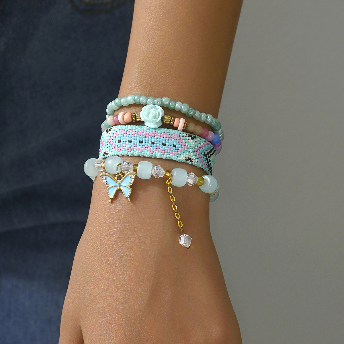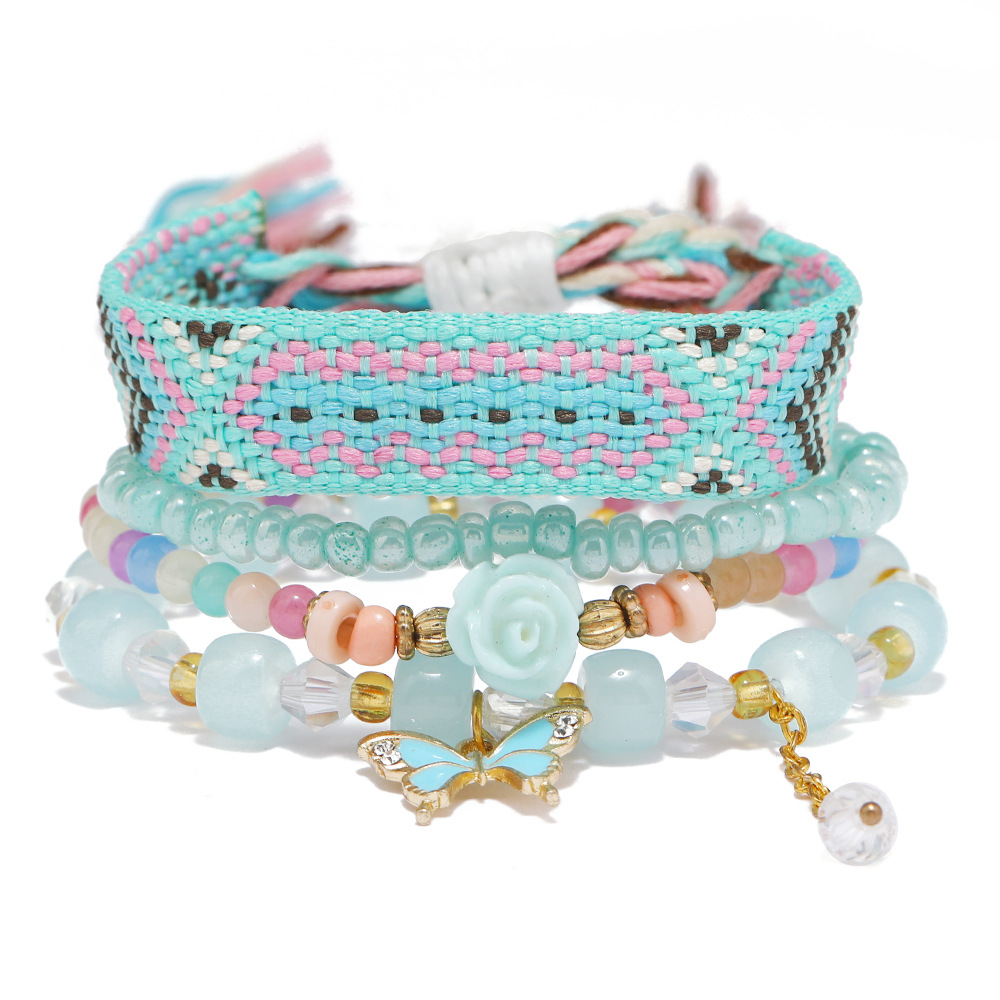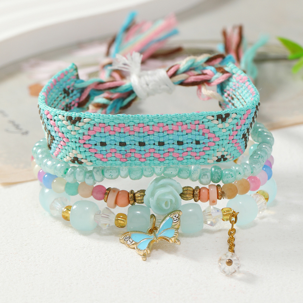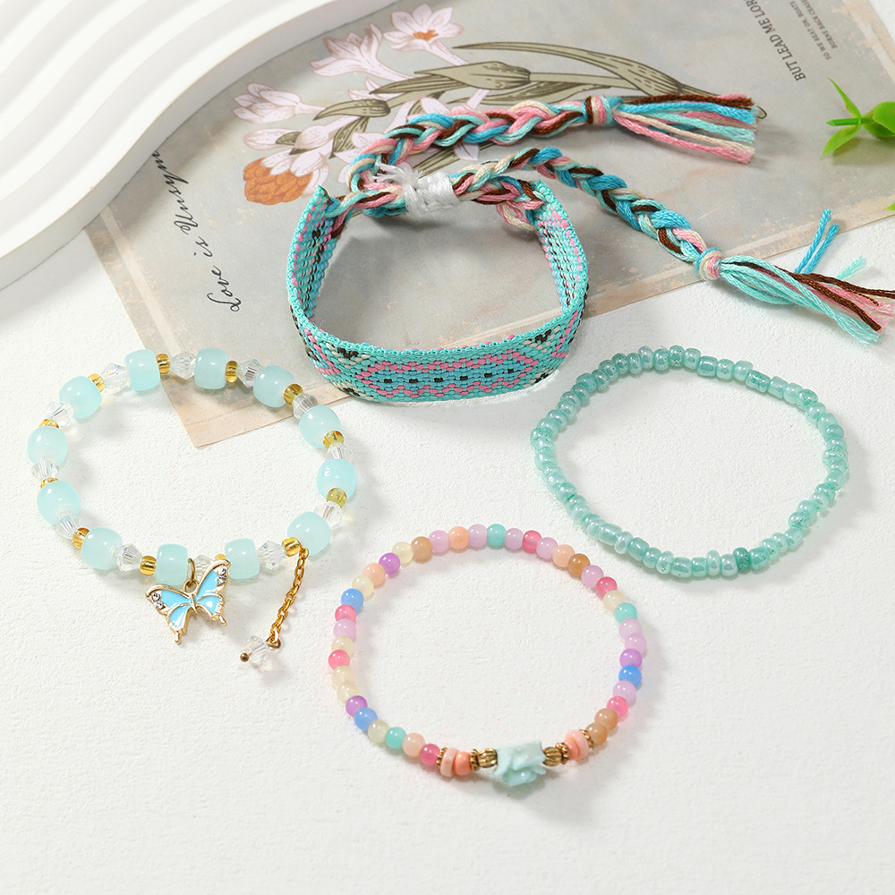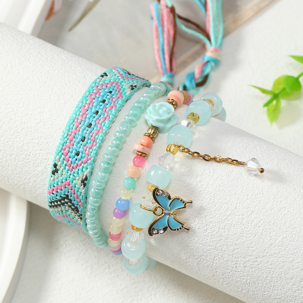 Wrap Bracelets, Seedbead, with Polyester & Zinc Alloy, handmade, 4 pieces & fashion jewelry & for woman, mixed colors, Sold By Set