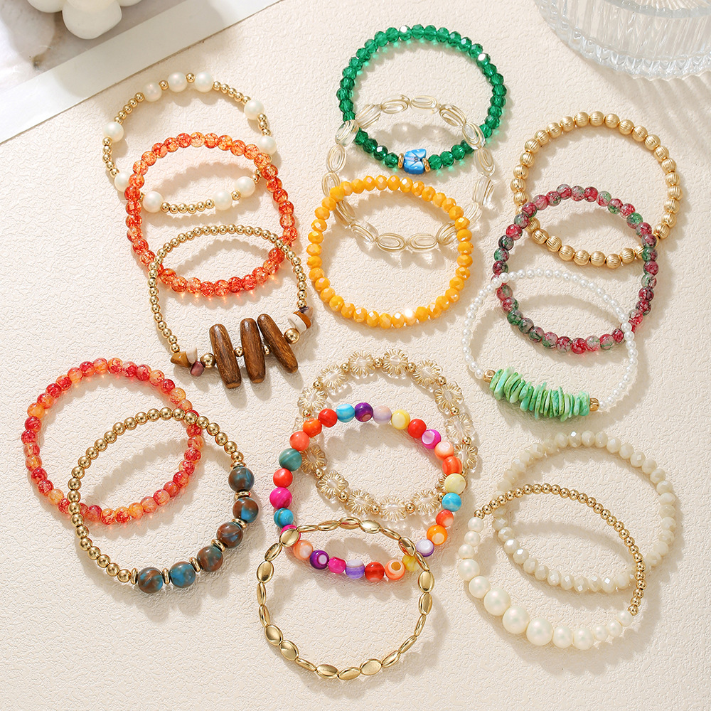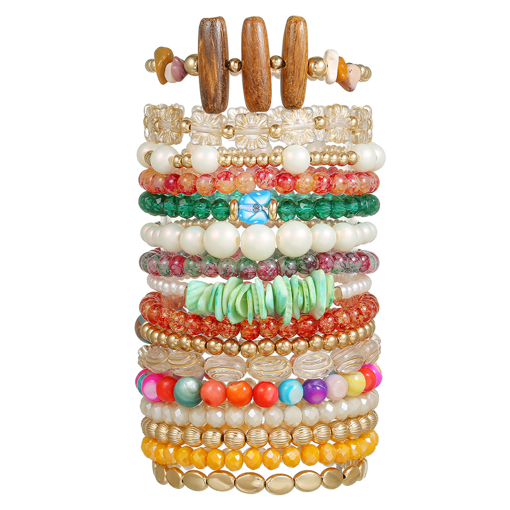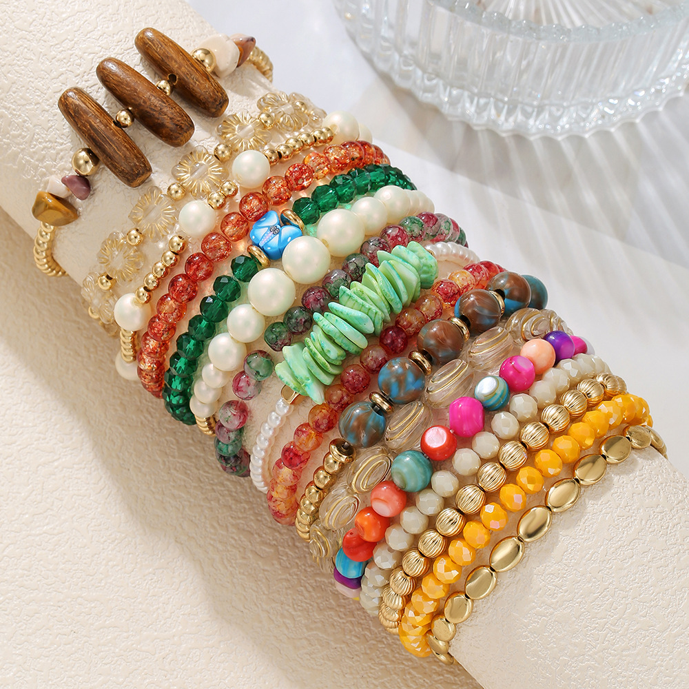 Wrap Bracelets, Zinc Alloy, with Shell & Crystal & Wood & Plastic Pearl, gold color plated, fashion jewelry & multilayer, more colors for choice, Sold By PC