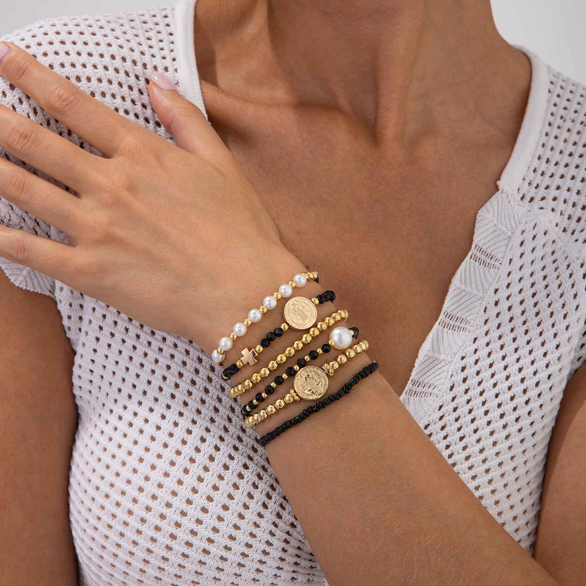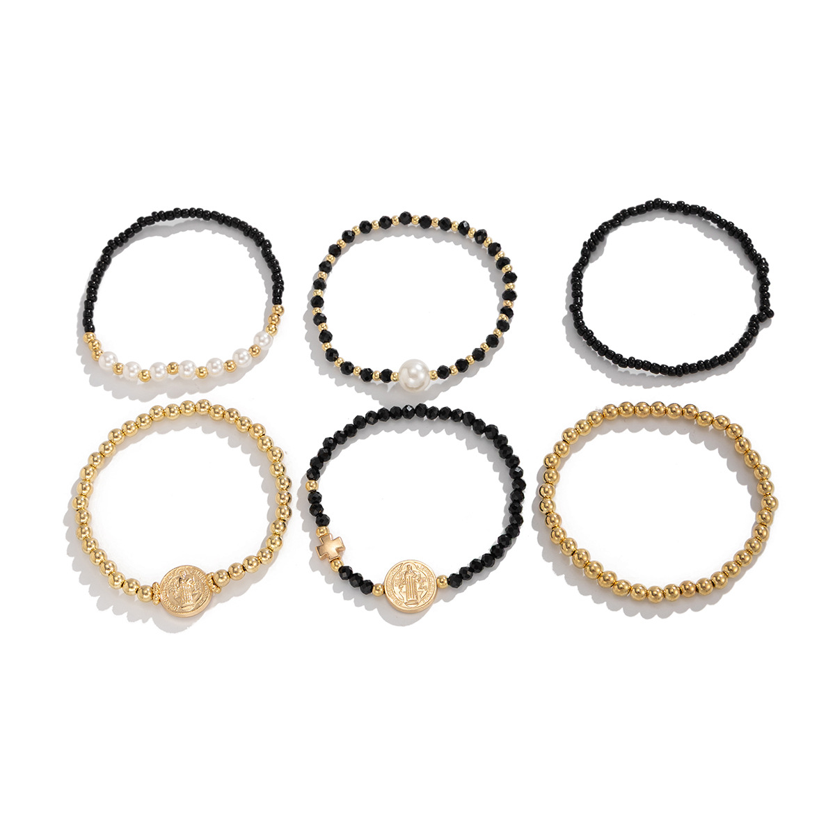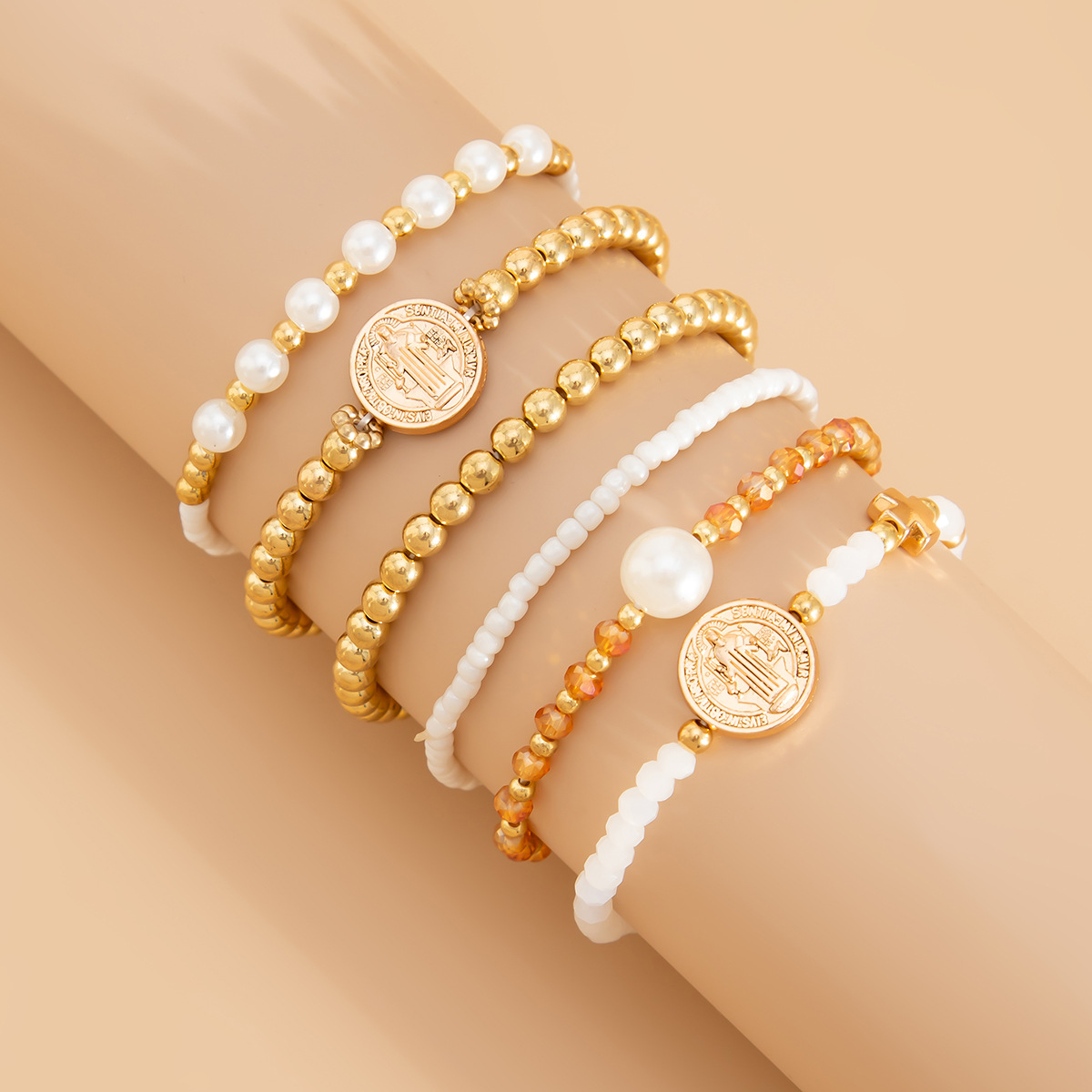 Wrap Bracelets, Zinc Alloy, with Seedbead & Crystal & Copper Coated Plastic & Plastic Pearl, gold color plated, 6 pieces & fashion jewelry, more colors for choice, 6Strands/Set, Sold By Set