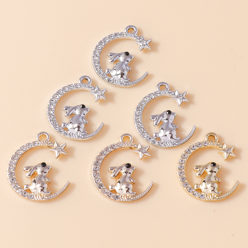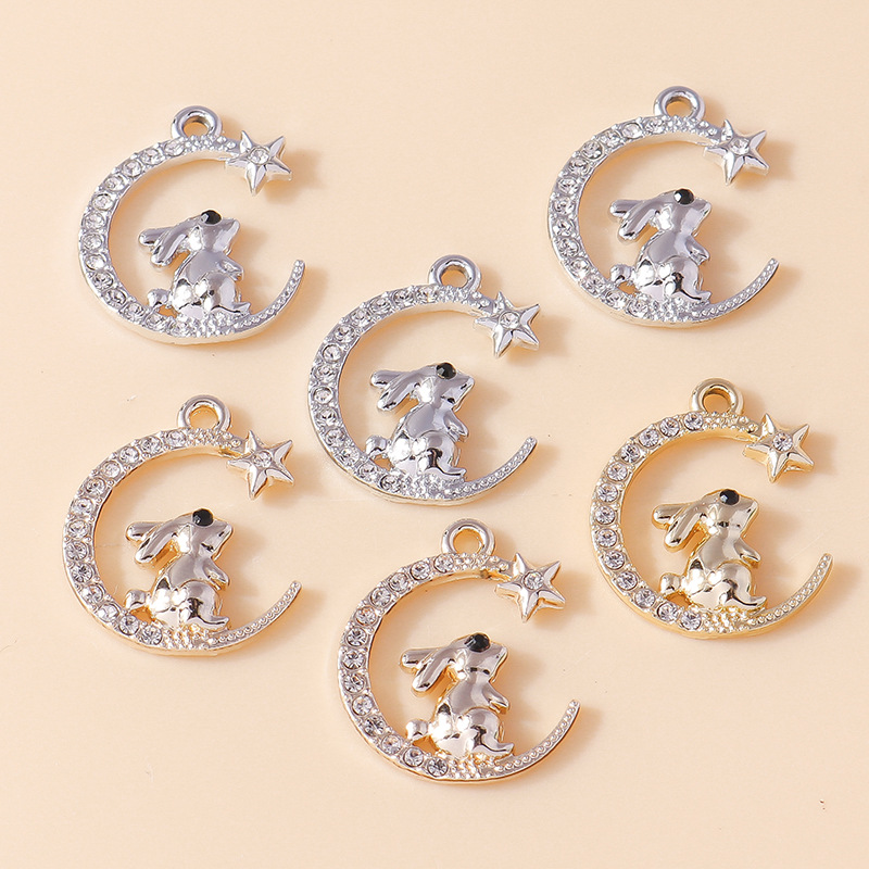 Zinc Alloy Animal Pendants, Rabbit, plated, DIY & with rhinestone, more colors for choice, 10PCs/Bag, Sold By Bag