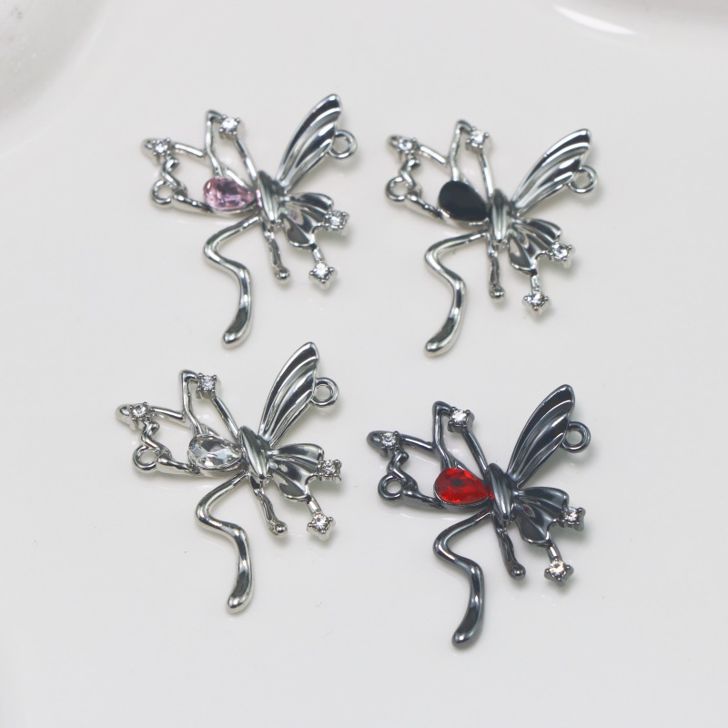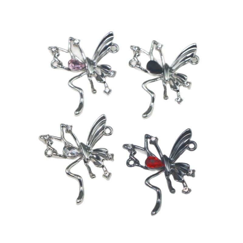 Zinc Alloy Animal Pendants, Butterfly, silver color plated, DIY & with rhinestone, more colors for choice, Sold By PC