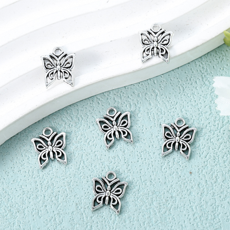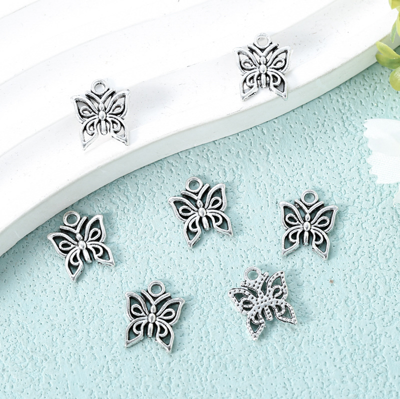 Zinc Alloy Animal Pendants, Butterfly, antique silver color plated, DIY, 14x12mm, Approx 100PCs/Bag, Sold By Bag
