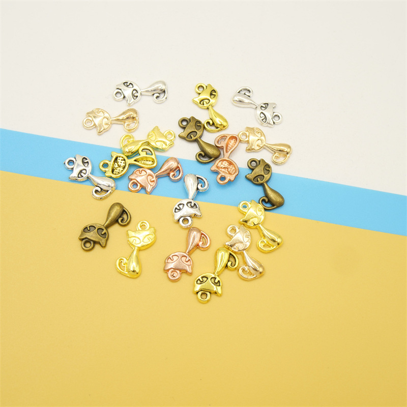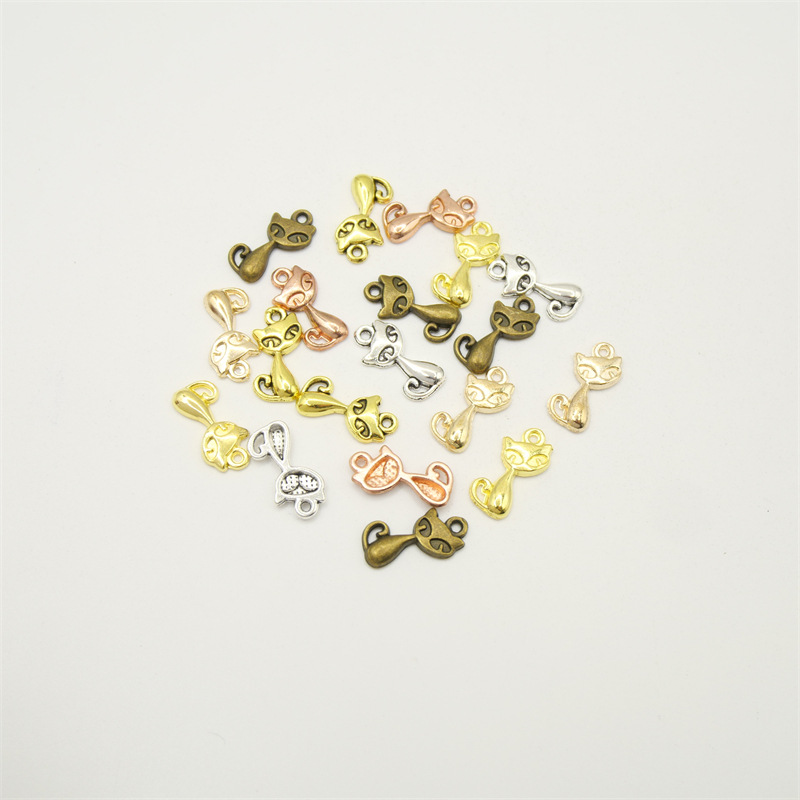 Zinc Alloy Animal Pendants, Cat, plated, DIY, more colors for choice, 17x8x2mm, 100PCs/Bag, Sold By Bag