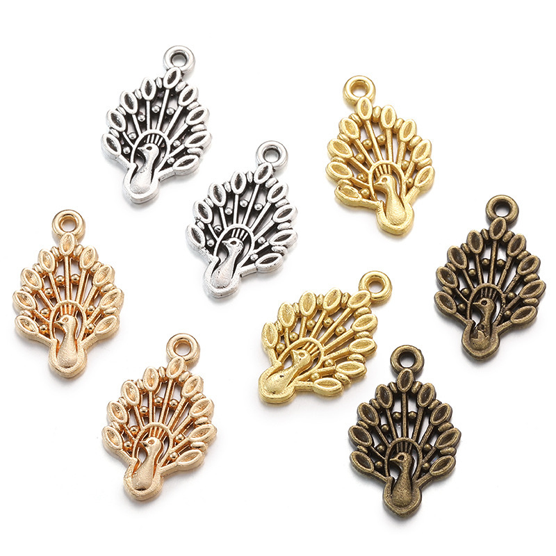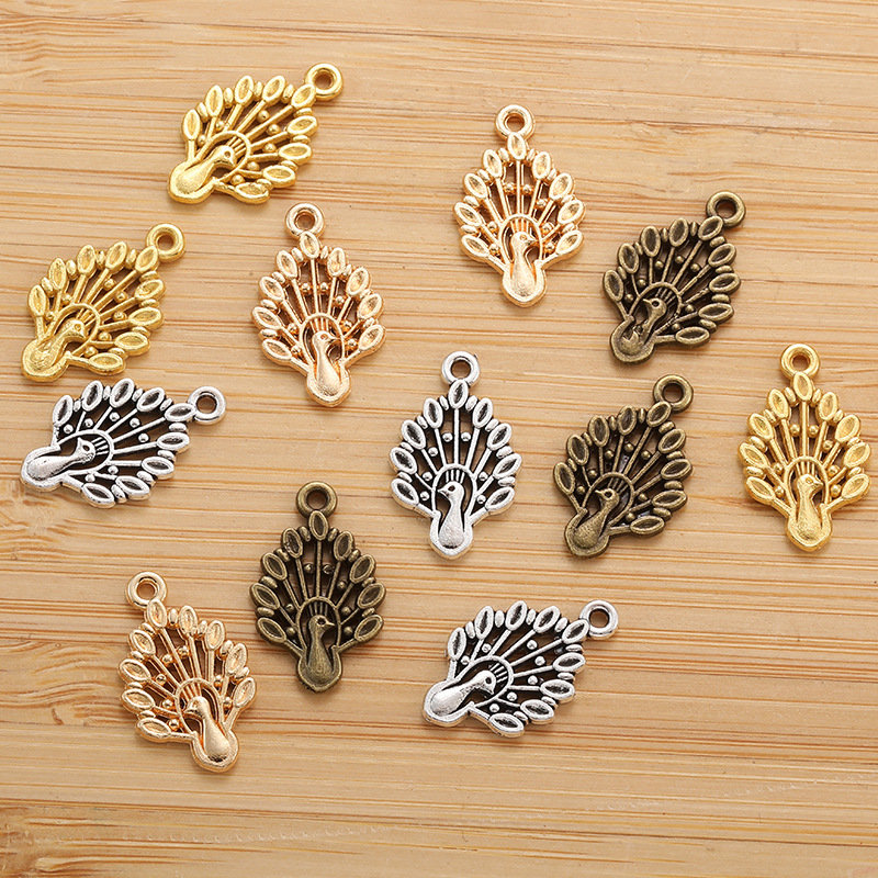 Zinc Alloy Animal Pendants, Peacock, plated, DIY, more colors for choice, 19x12mm, Approx 100PCs/Bag, Sold By Bag