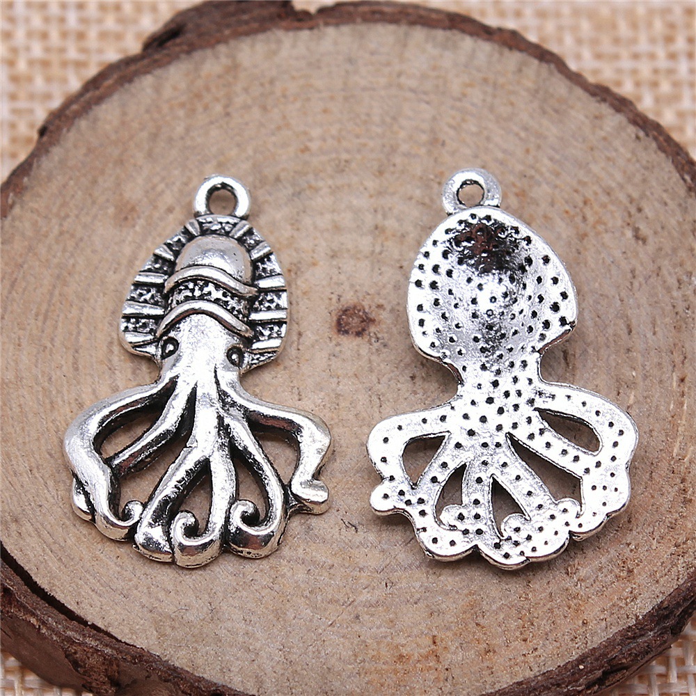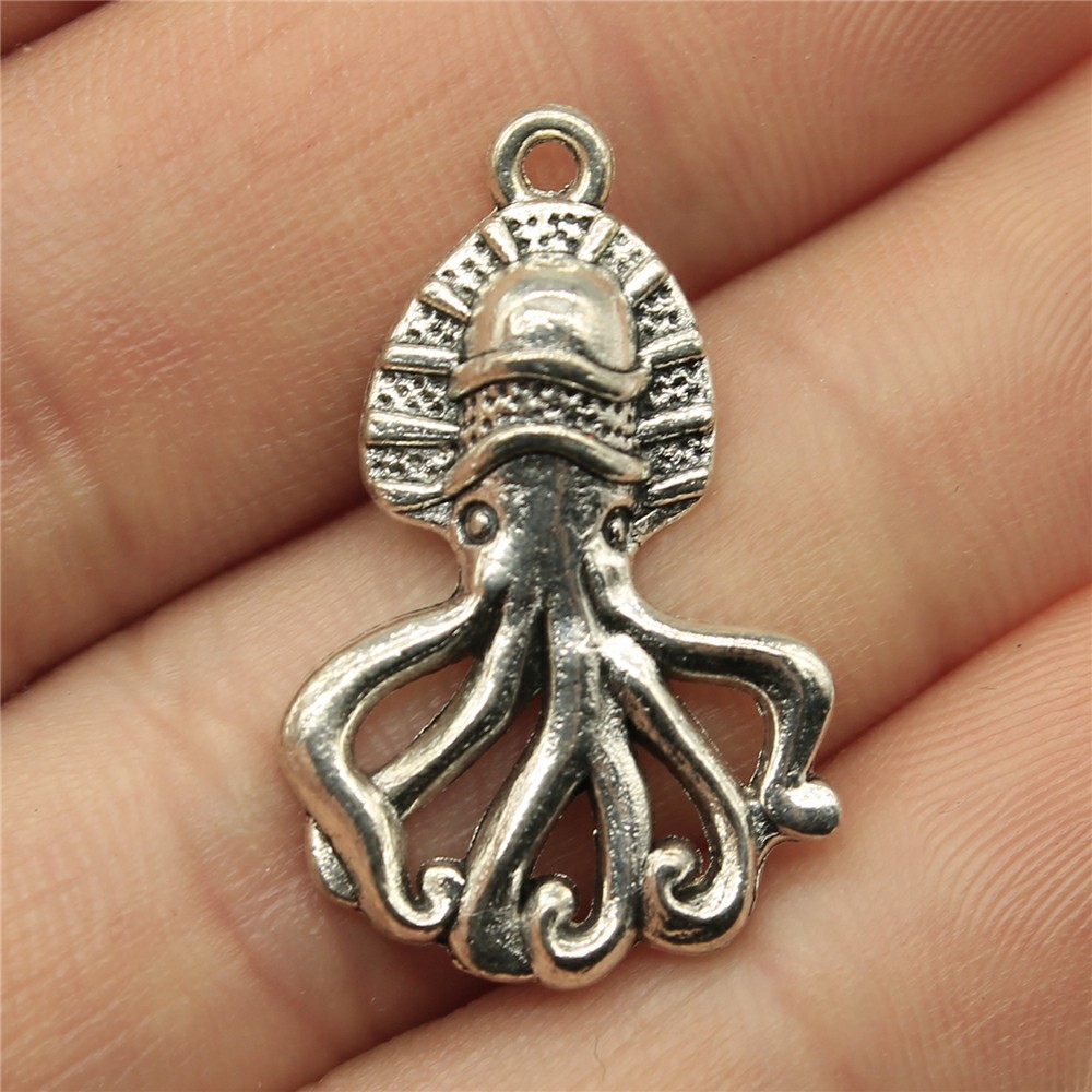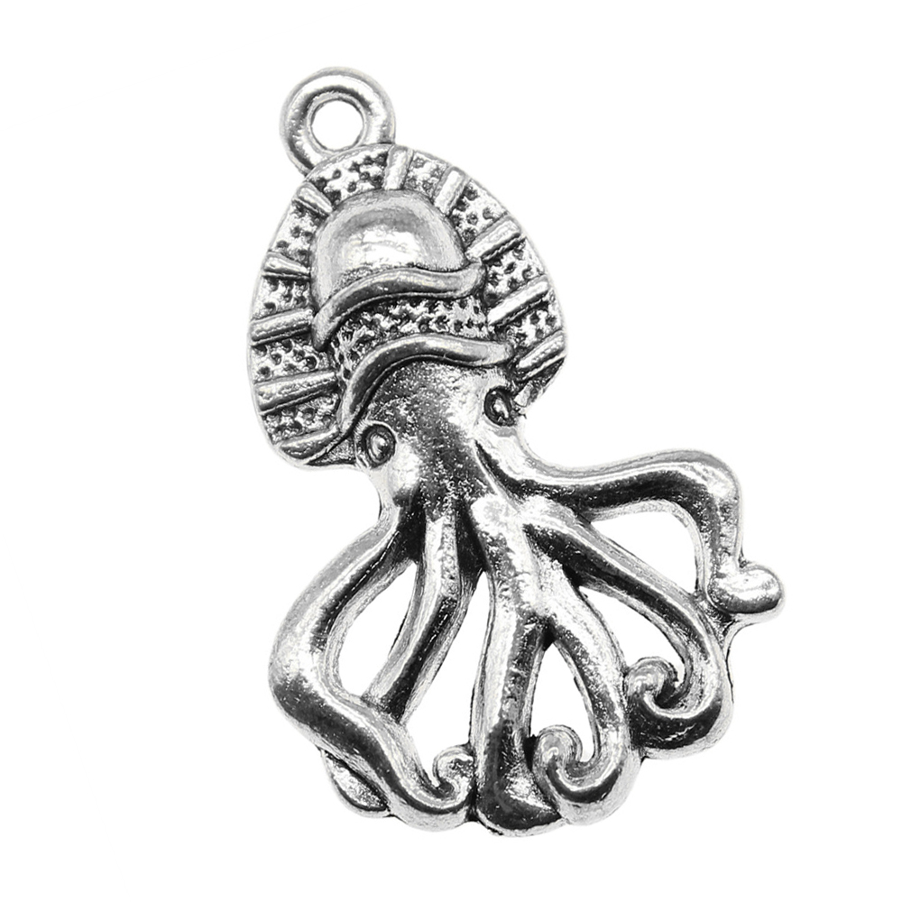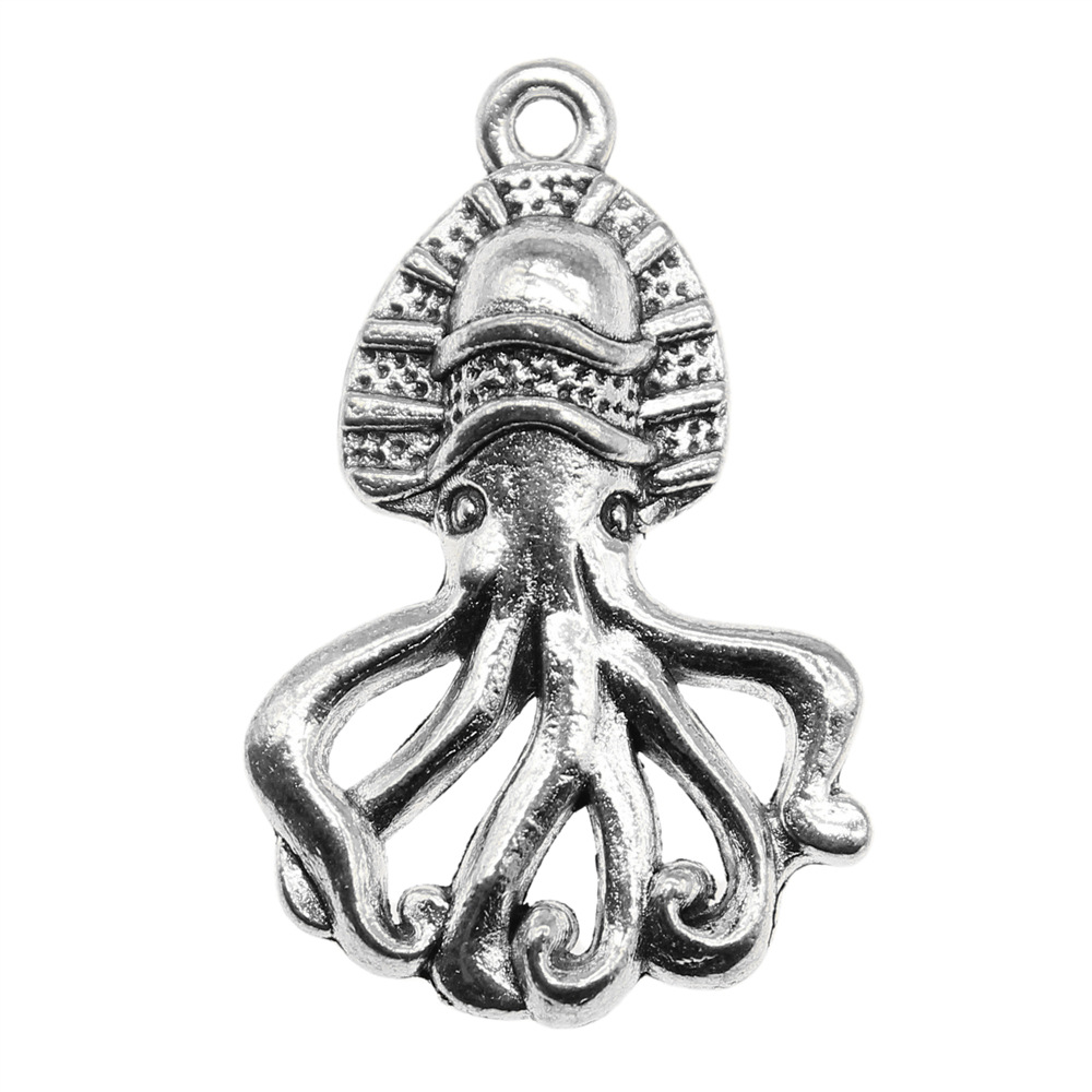 Zinc Alloy Animal Pendants, Octopus, plated, DIY & hollow, antique silver color, 10PCs/Bag, Sold By Bag