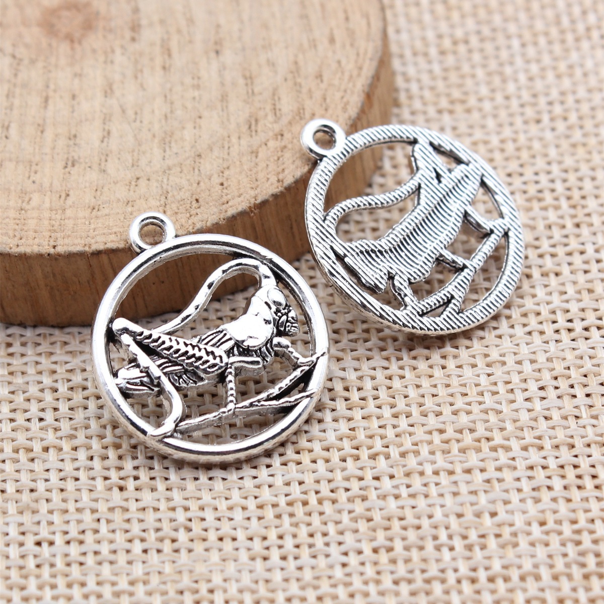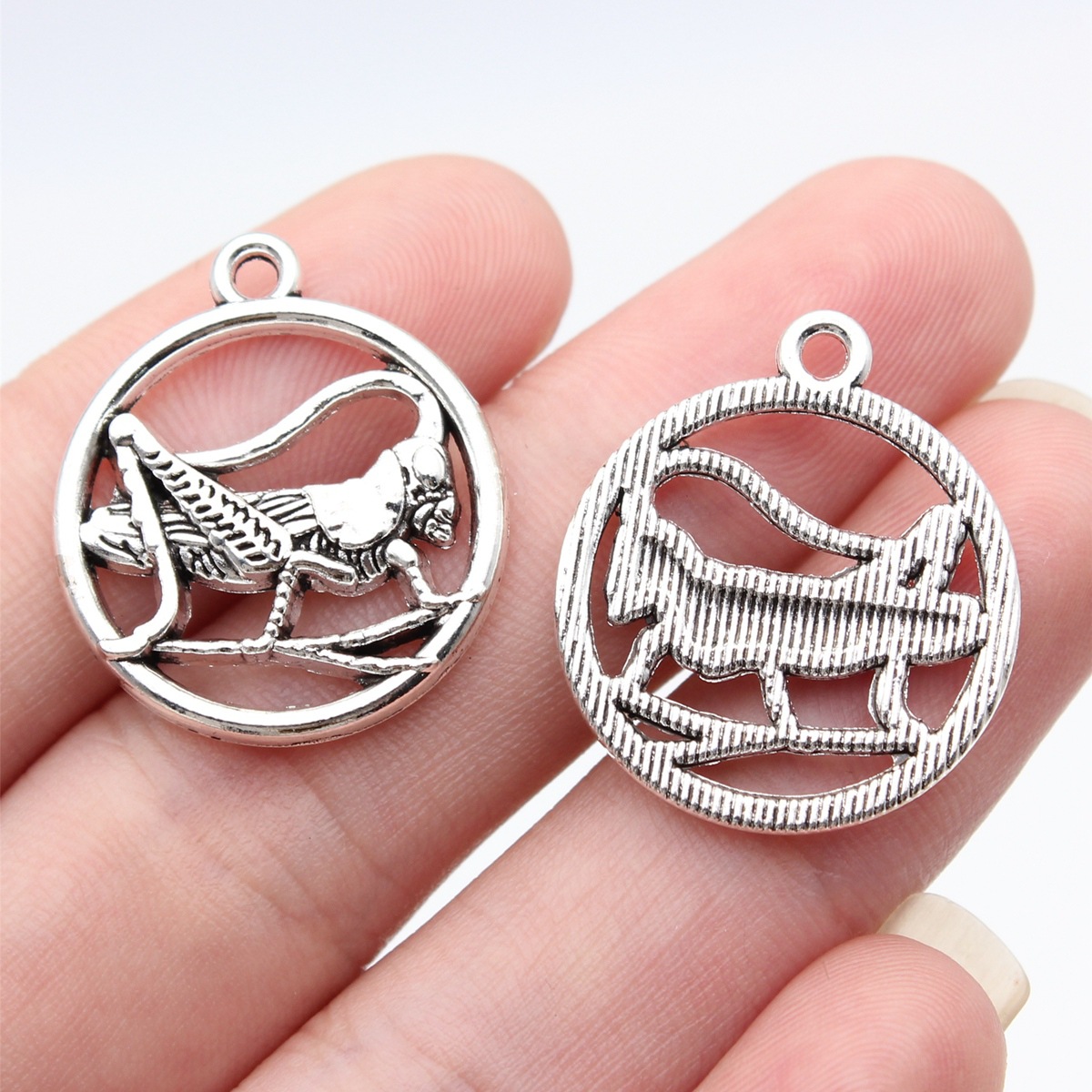 Zinc Alloy Animal Pendants, Round, plated, DIY & hollow, antique silver color, Sold By PC