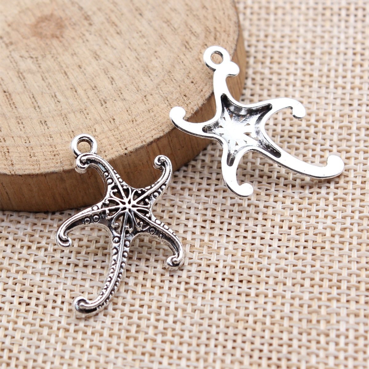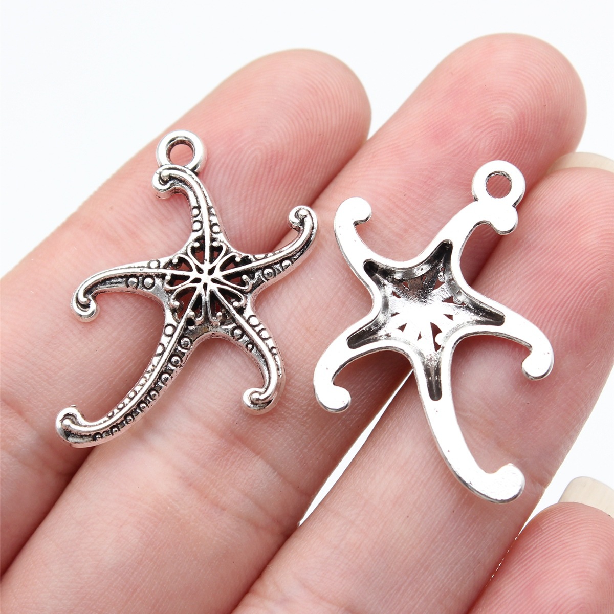 Zinc Alloy Animal Pendants, Starfish, plated, DIY & hollow, antique silver color, 20PCs/Bag, Sold By Bag