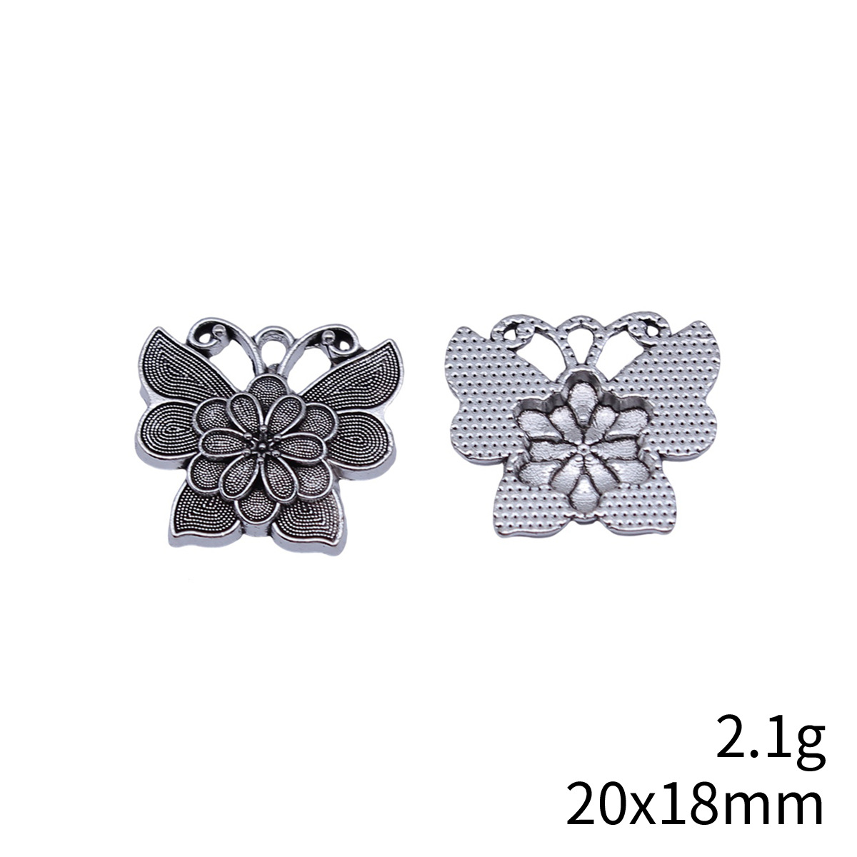 Zinc Alloy Animal Pendants, Butterfly, plated, DIY, antique silver color, 10PCs/Bag, Sold By Bag