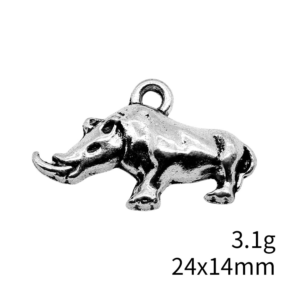 Zinc Alloy Animal Pendants, Rhinoceros, plated, DIY, antique silver color, 10PCs/Bag, Sold By Bag