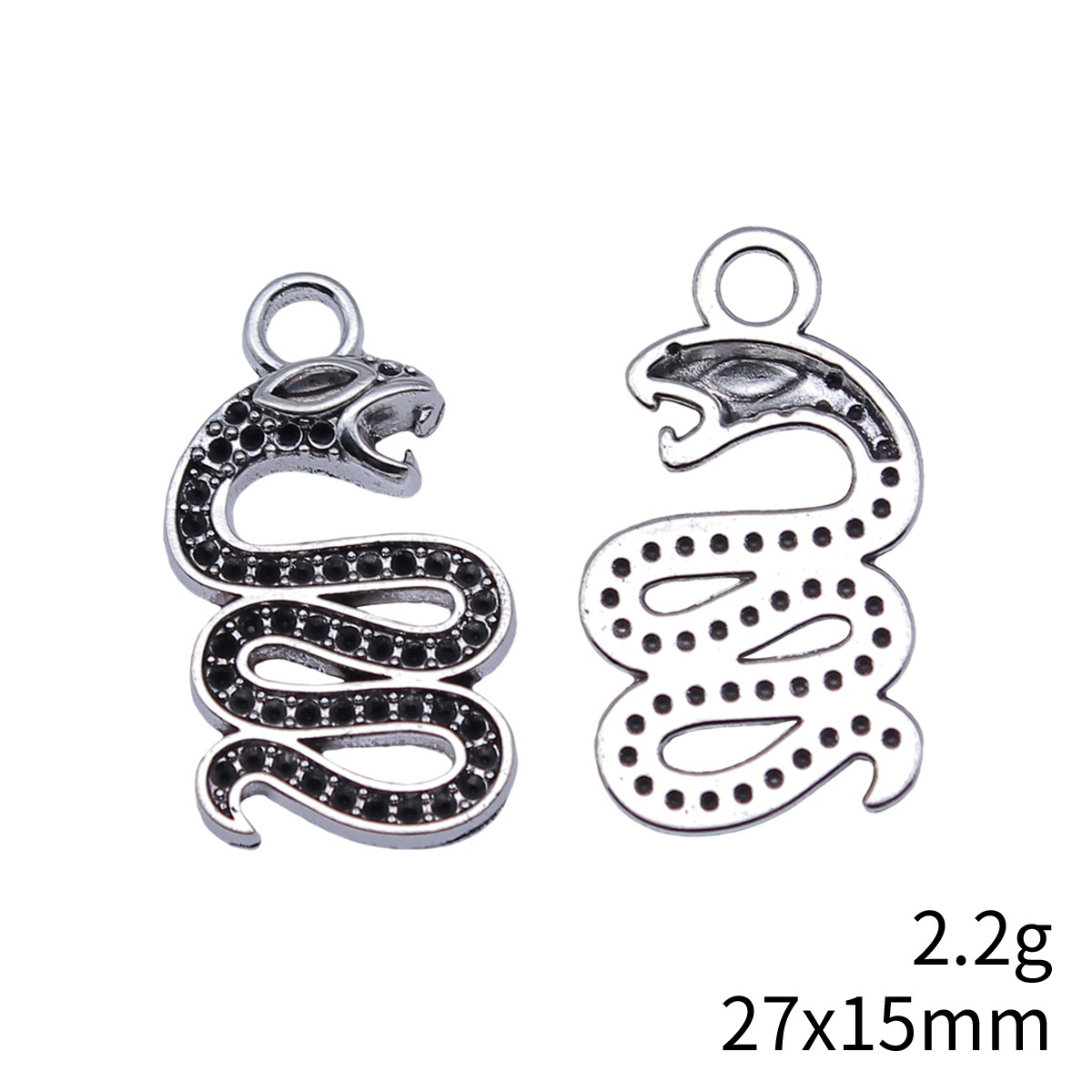Zinc Alloy Animal Pendants, Snake, plated, DIY, antique silver color, 10PCs/Bag, Sold By Bag