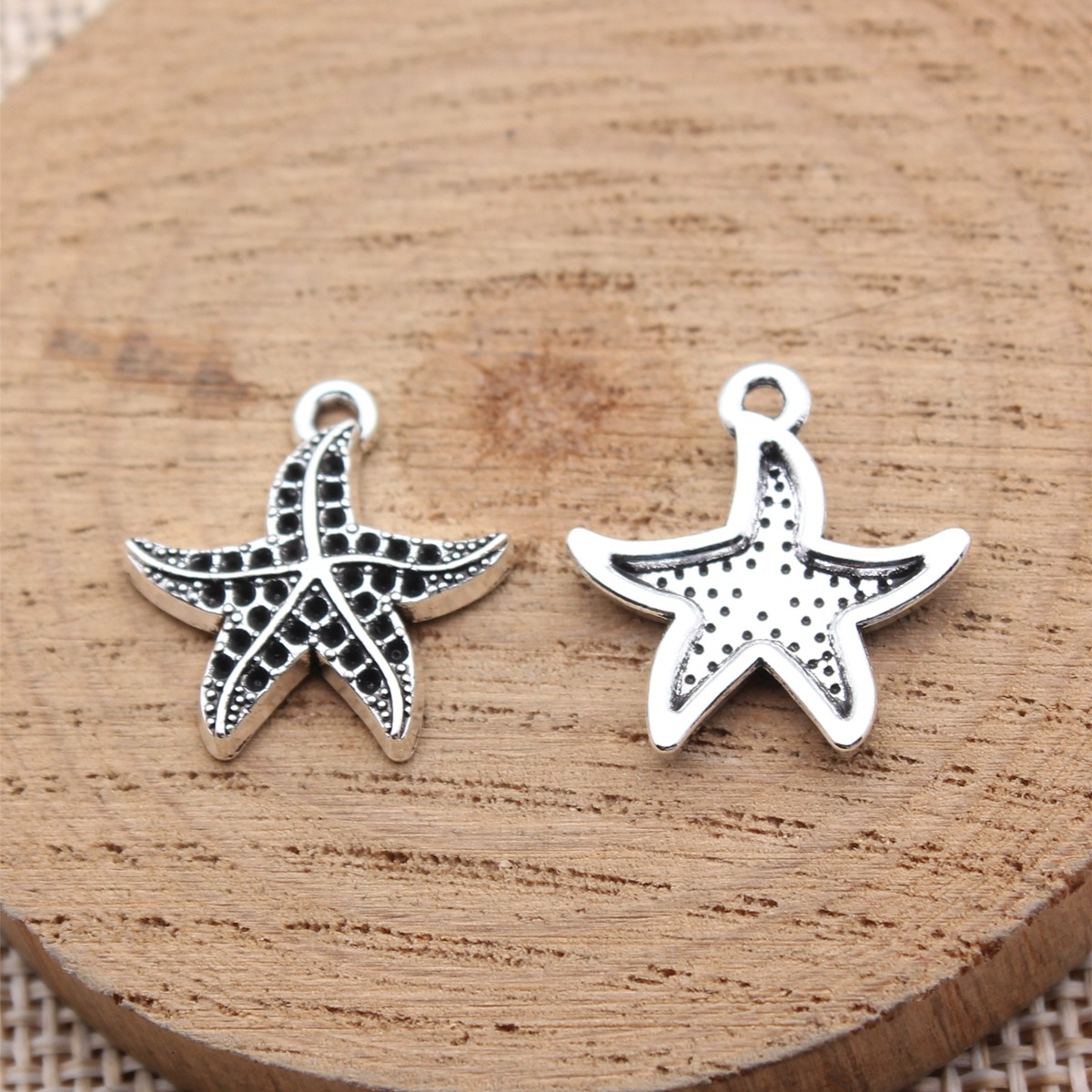 Zinc Alloy Animal Pendants, Starfish, plated, DIY, antique silver color, Sold By PC